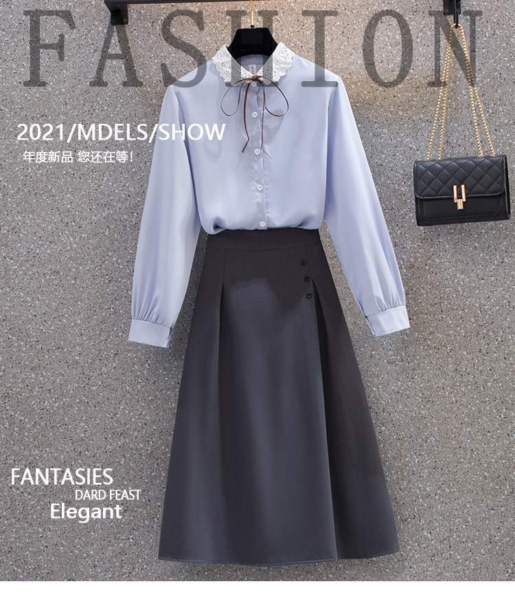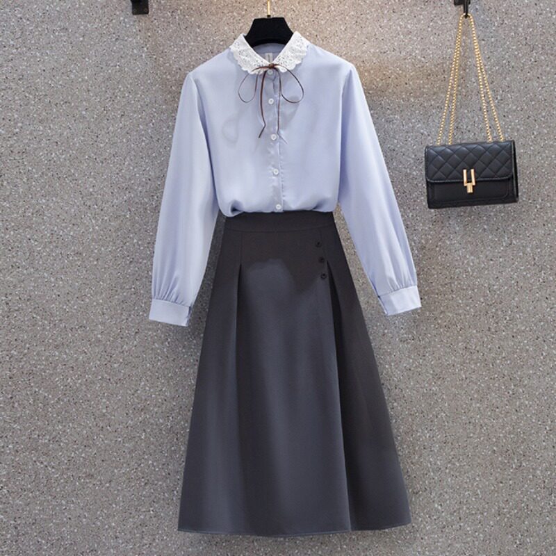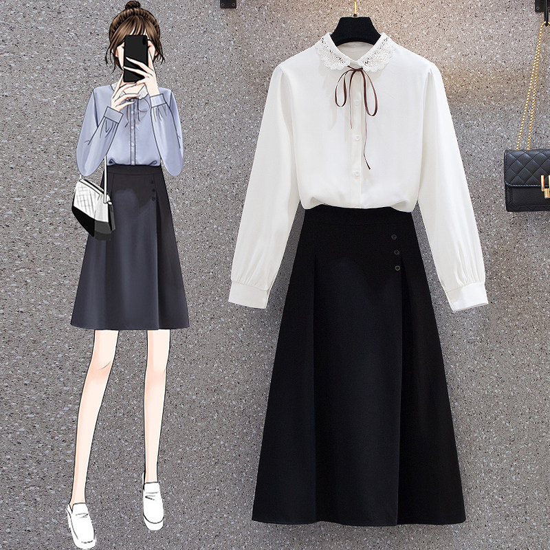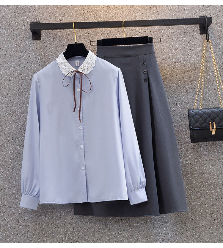 Весенняя модная рубашка, юбка, комплект, большой размер, коллекция 2022, подходит для полных девушек