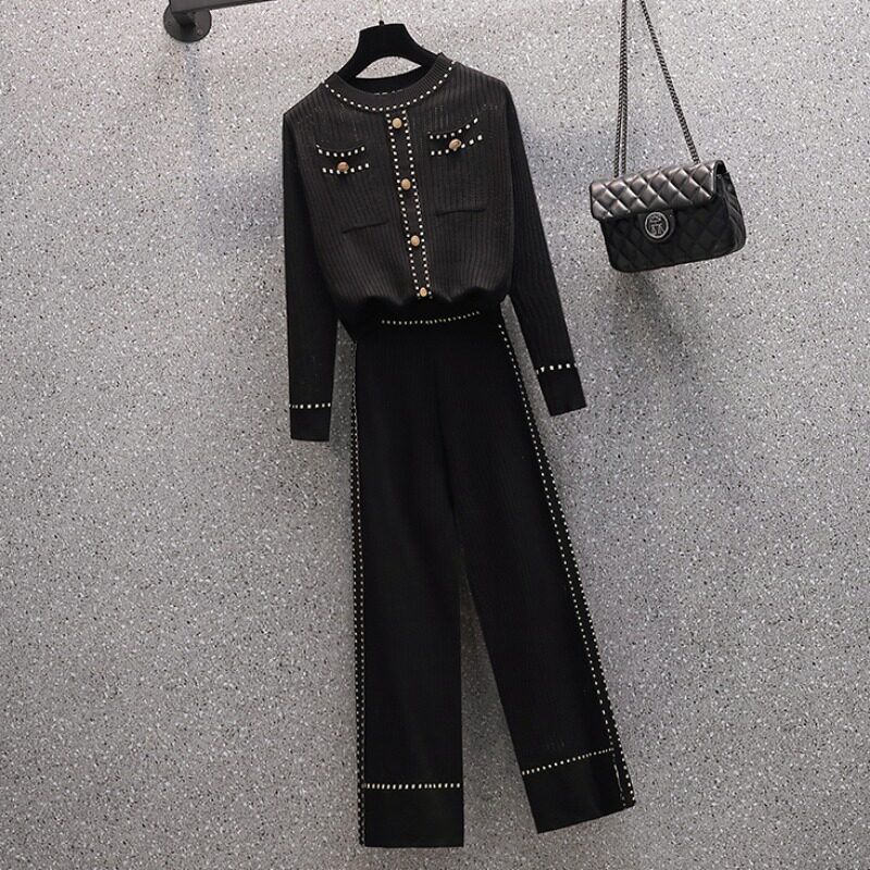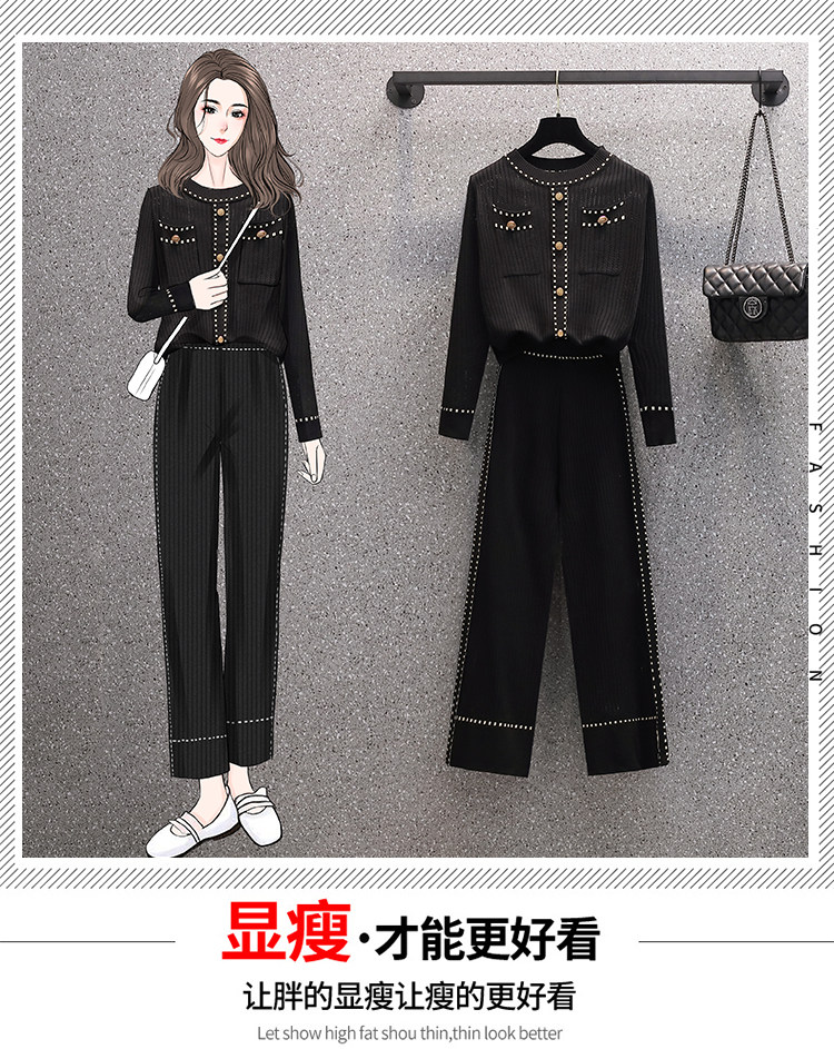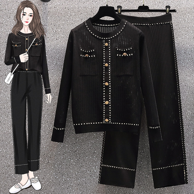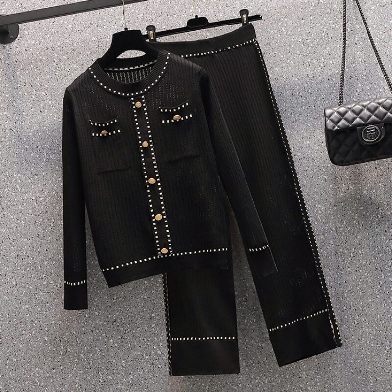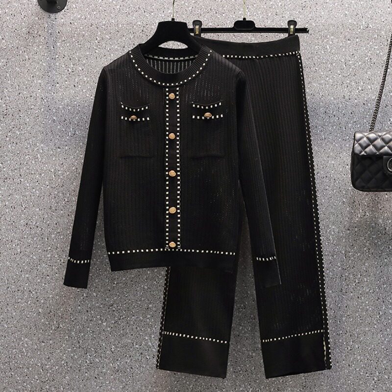 Осенние трикотажные небольшие штаны, комплект, большой размер, коллекция 2021, в западном стиле, в стиле Шанель