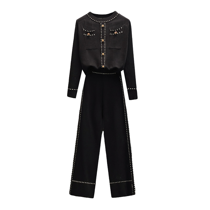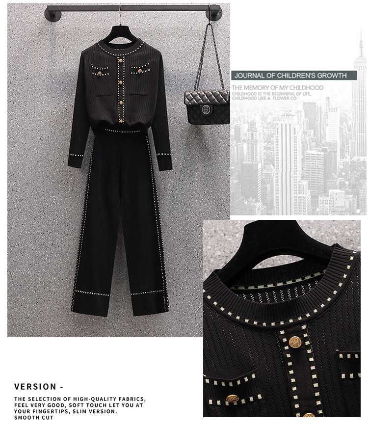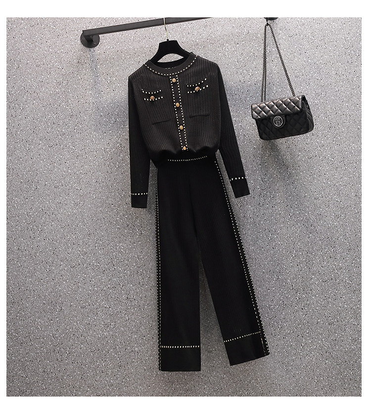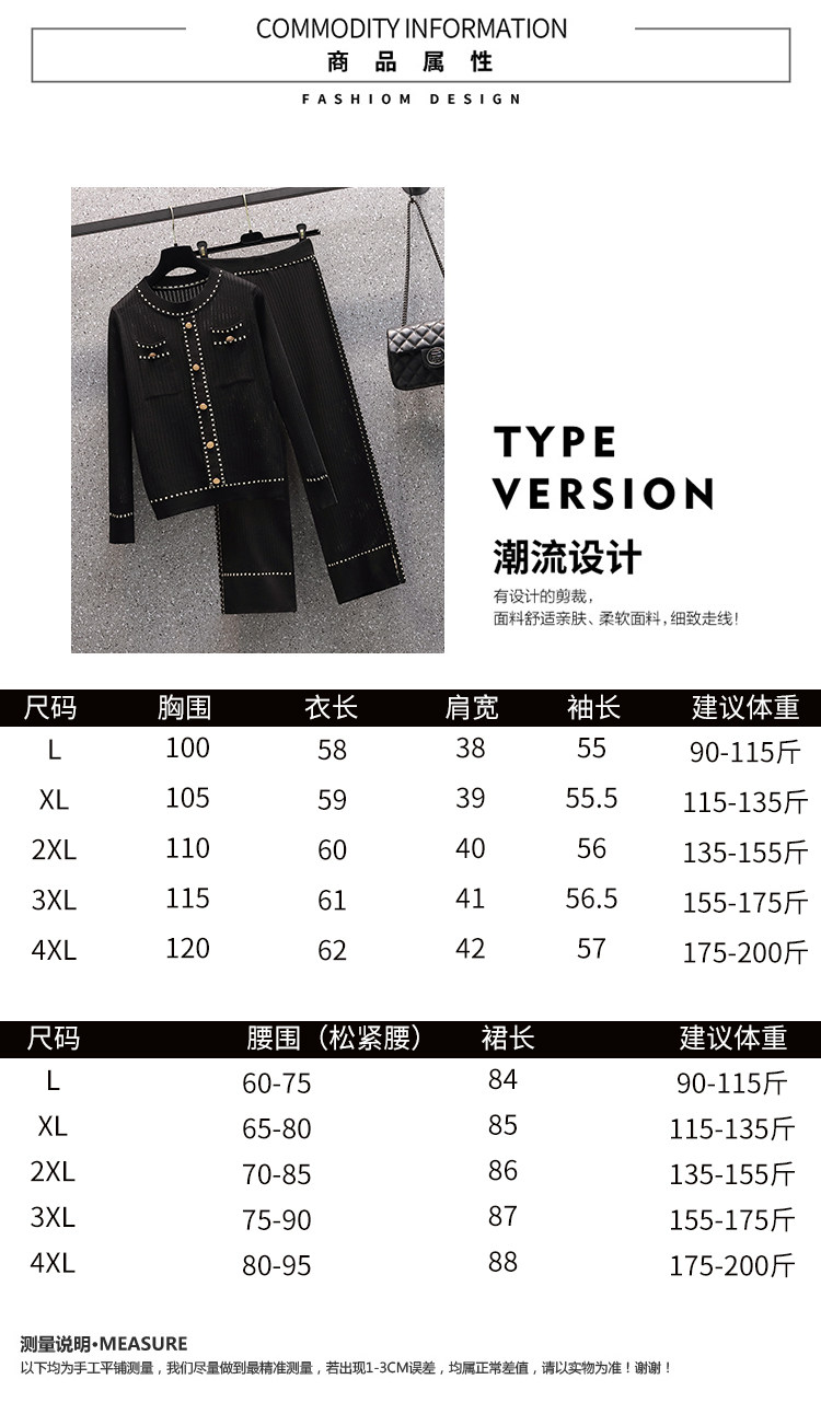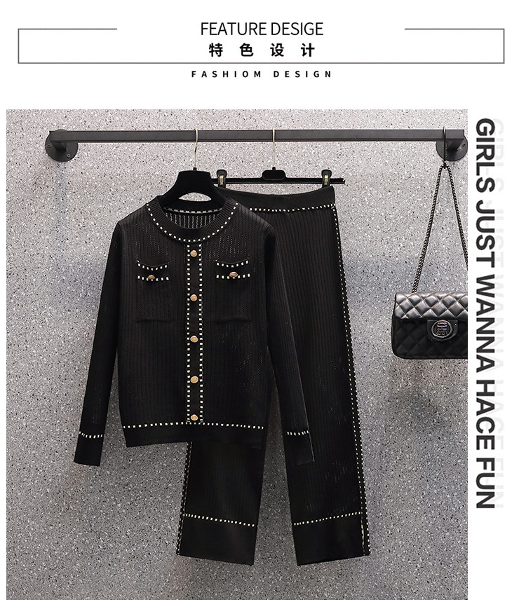 Осенние трикотажные небольшие штаны, комплект, большой размер, коллекция 2021, в западном стиле, в стиле Шанель
