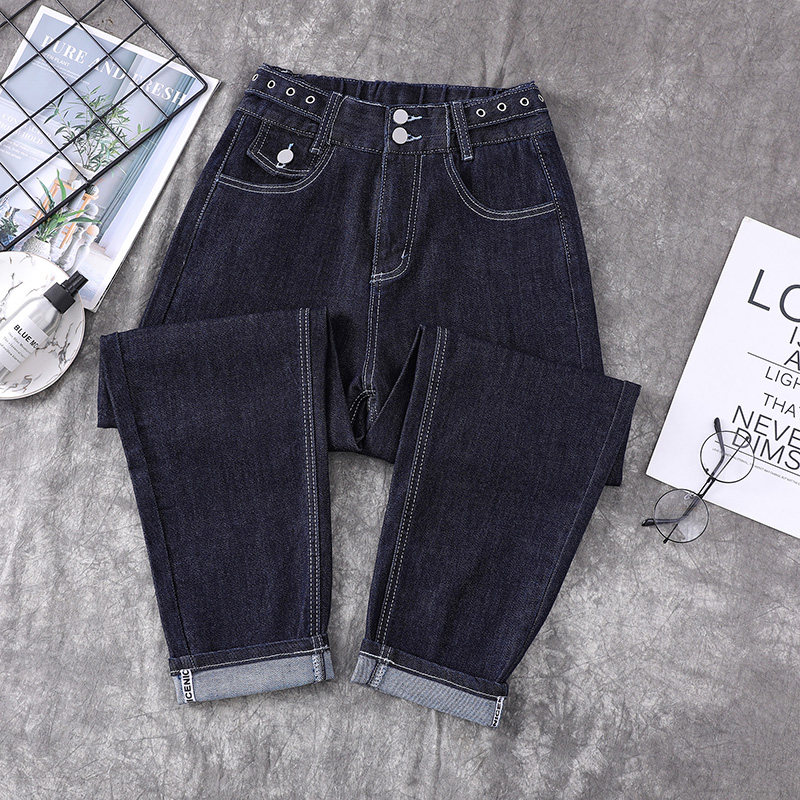 Весенние джинсы, приталенные штаны, большой размер, коллекция 2022, тренд сезона, подходит для полных девушек, свободный прямой крой, высокая талия