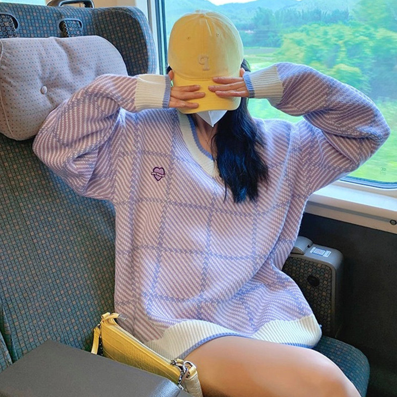 Осенний сиреневый свитер, 2021 года, популярно в интернете, свободный крой, изысканный стиль