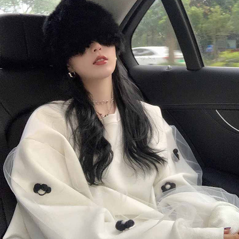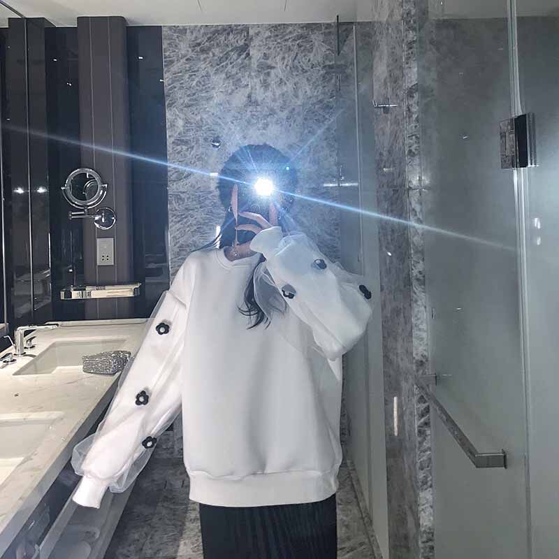 Белая весенняя тонкая толстовка с круглым воротником, европейский стиль, в американском стиле, оверсайз, изысканный стиль