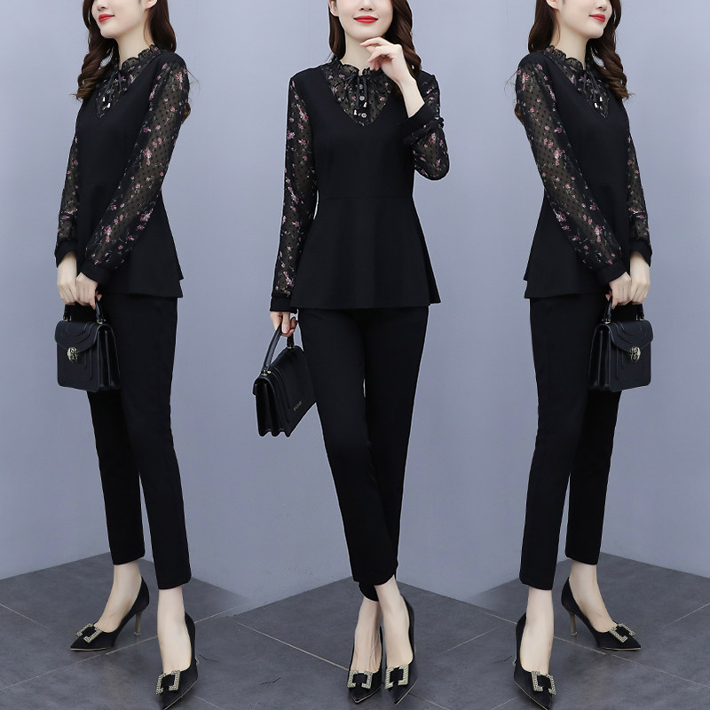 Демисезонный модный комплект, штаны, большой размер, изысканный стиль