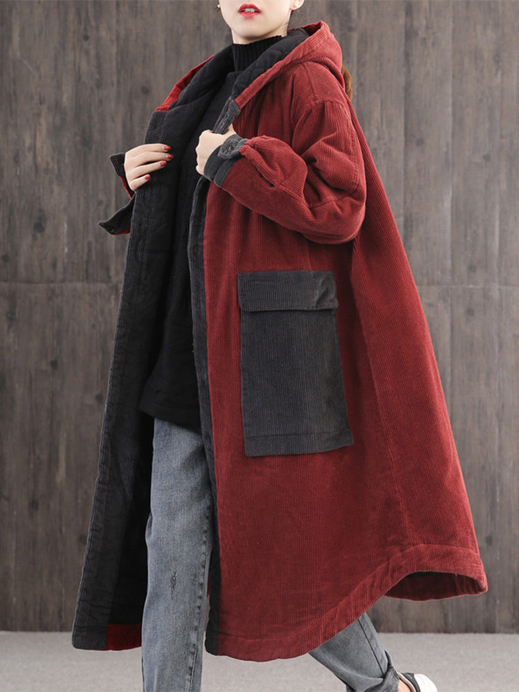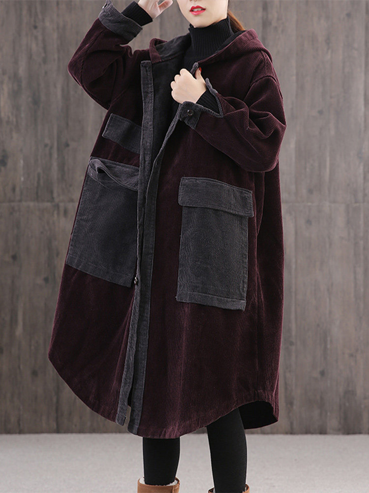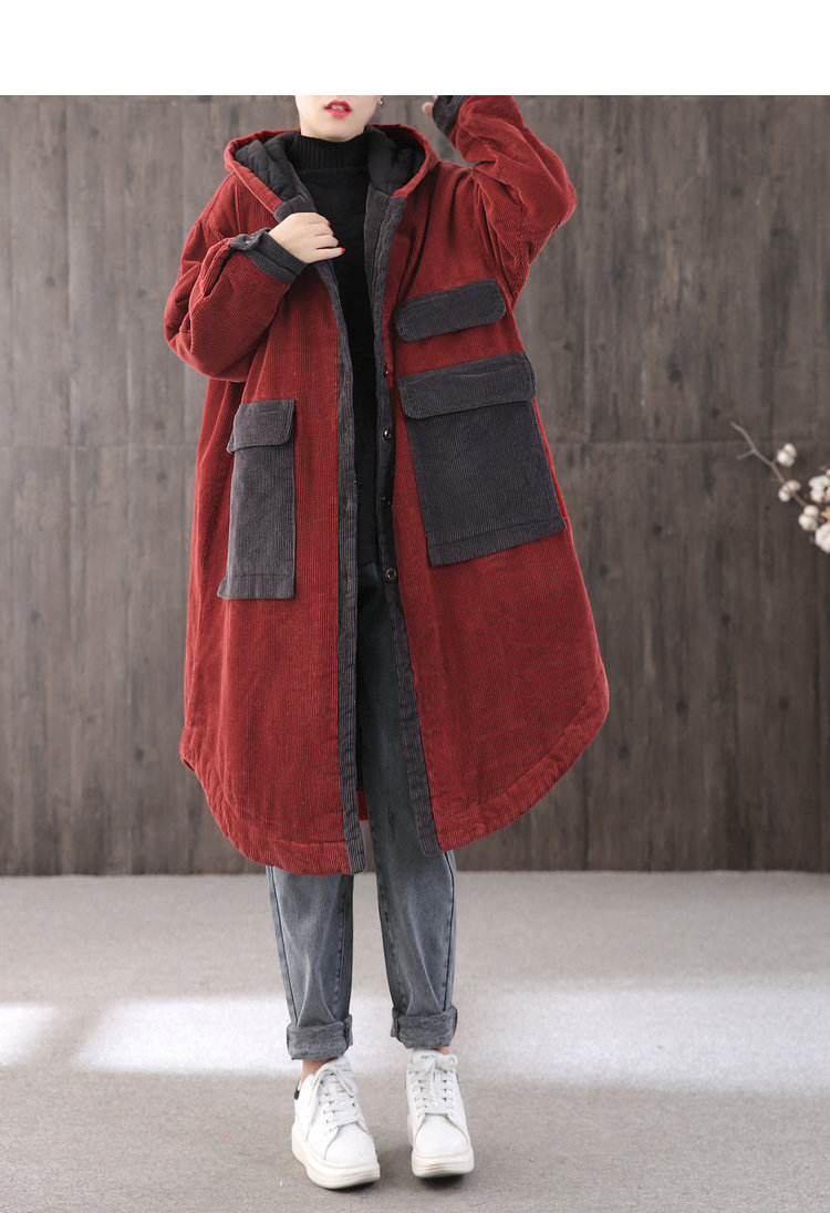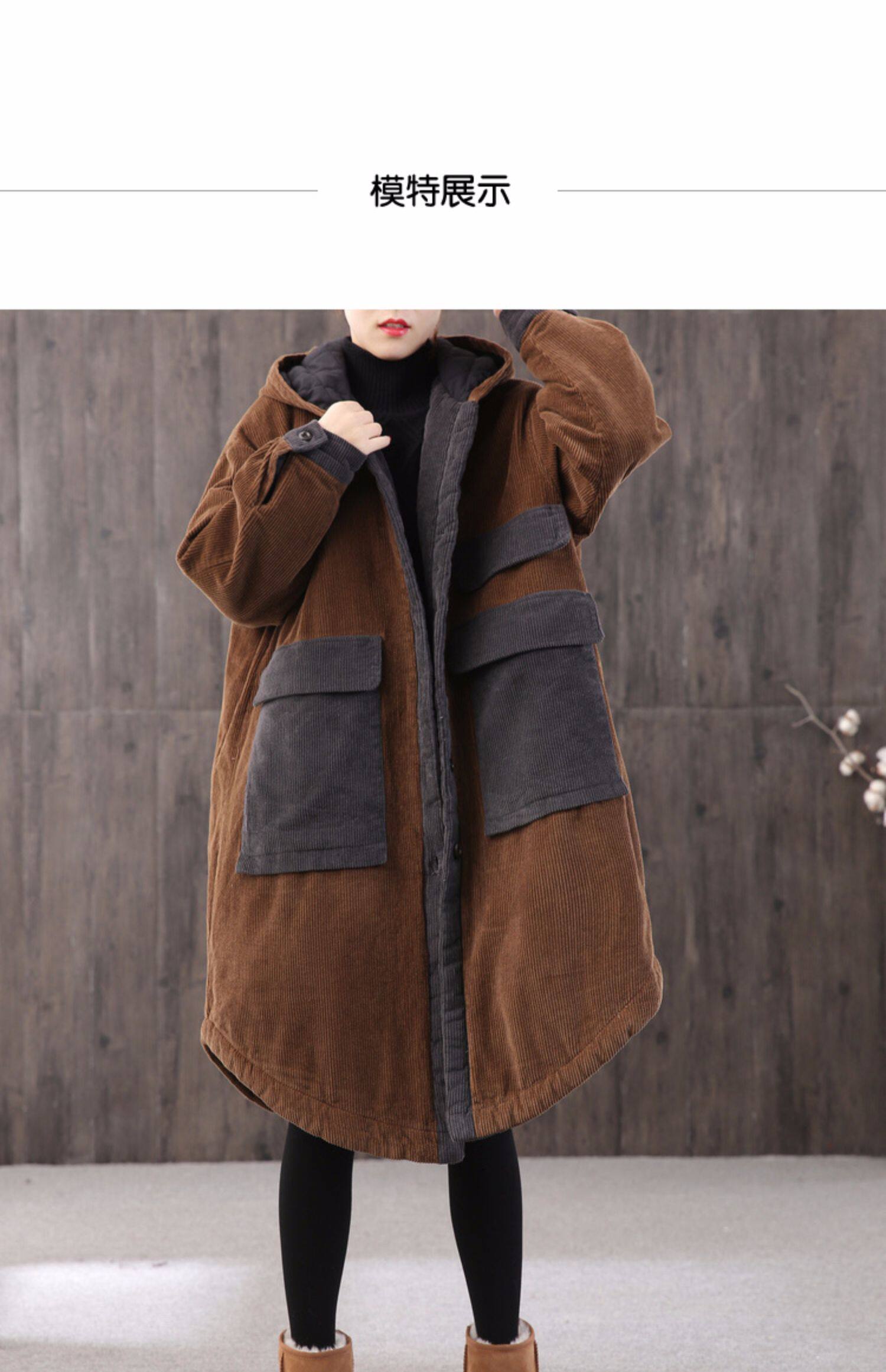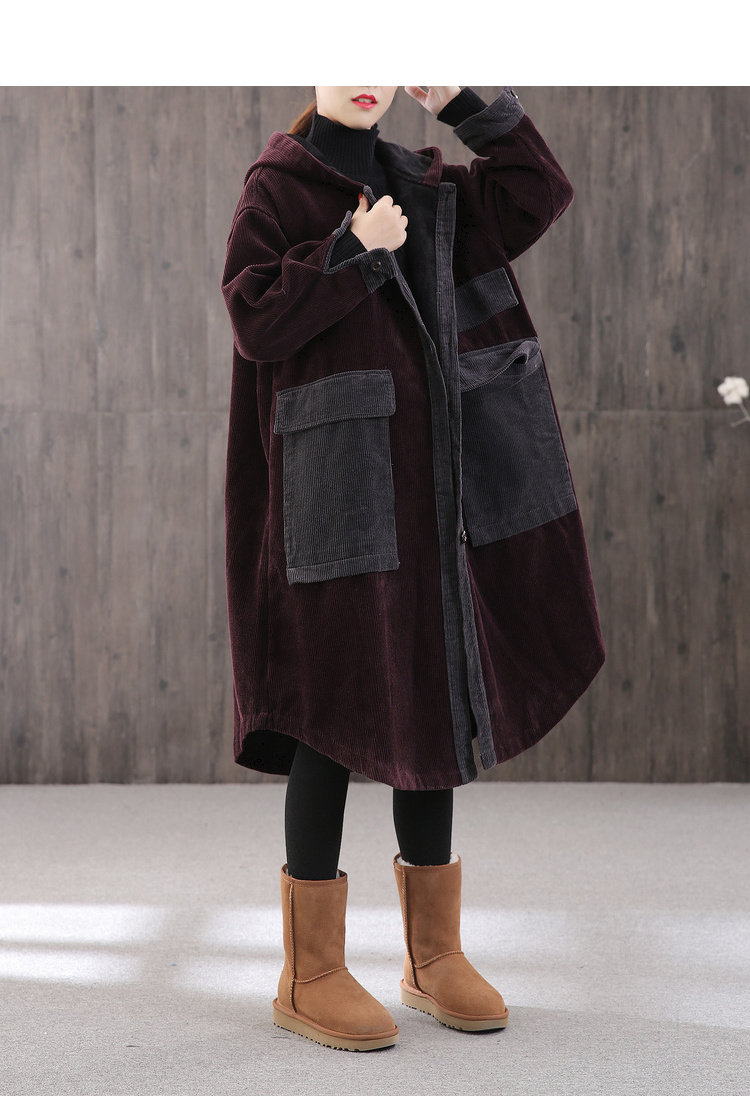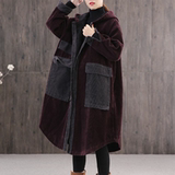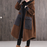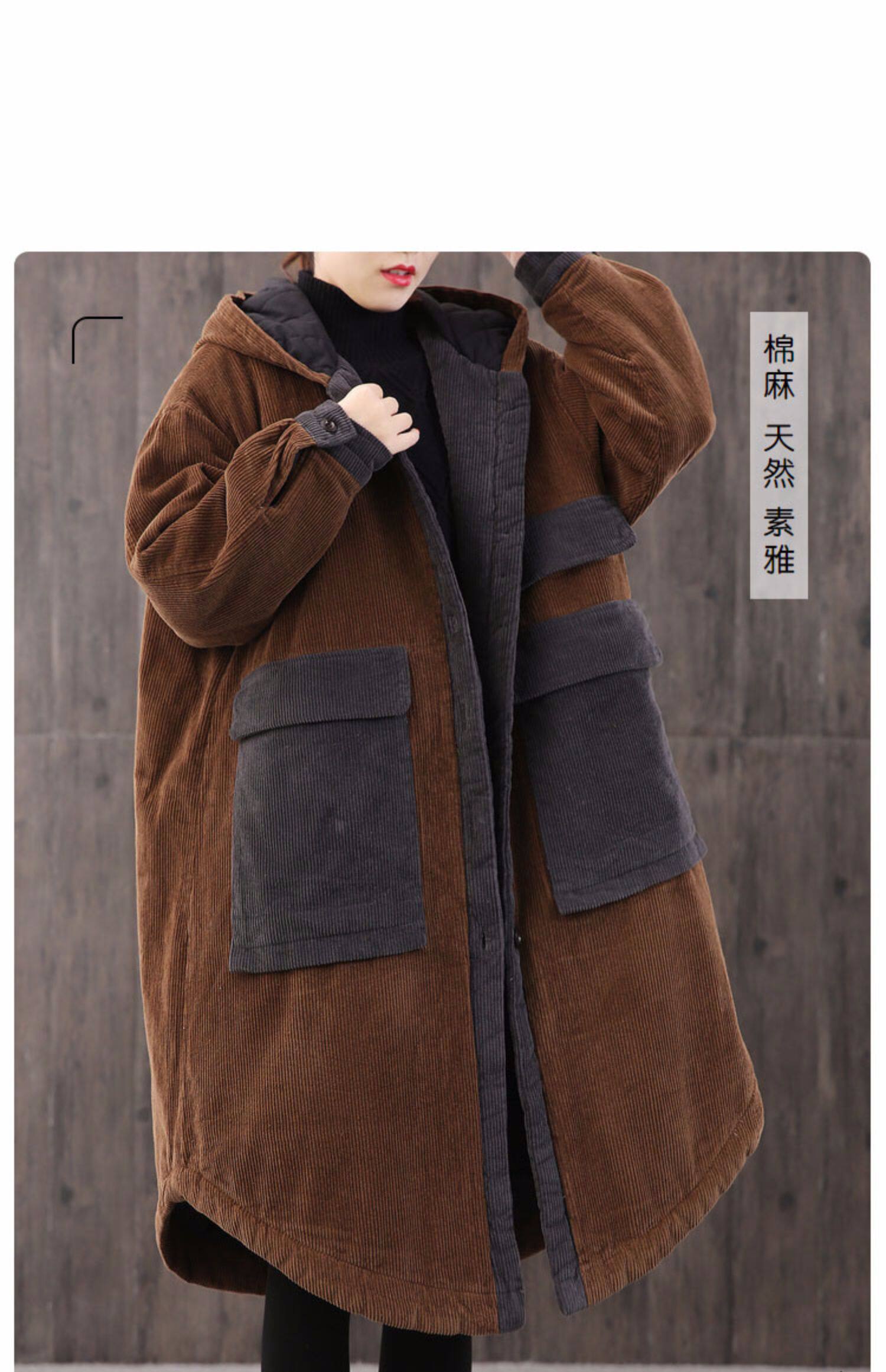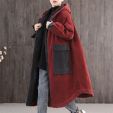 Вельветовая зимняя женская ретро утепленная длинная куртка, большой размер, свободный крой, средней длины