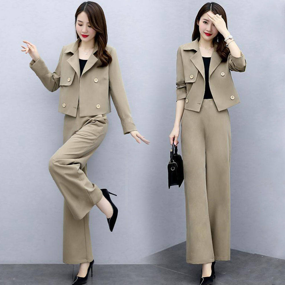Весенняя модная куртка, штаны, комплект, большой размер, коллекция 2023, по фигуре, в западном стиле