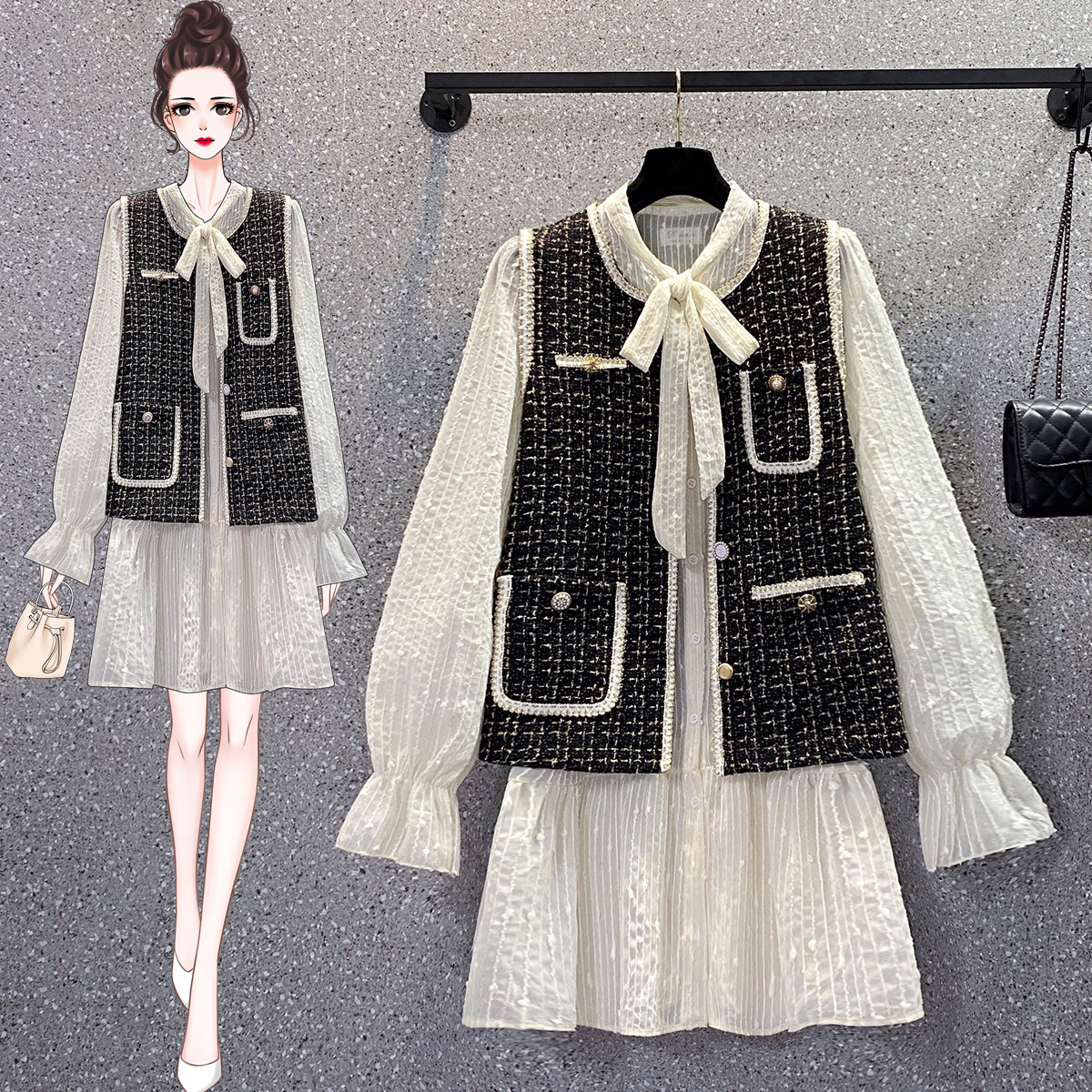 Осенний жилет, платье, комплект, большой размер, коллекция 2022, подходит для полных девушек, в корейском стиле