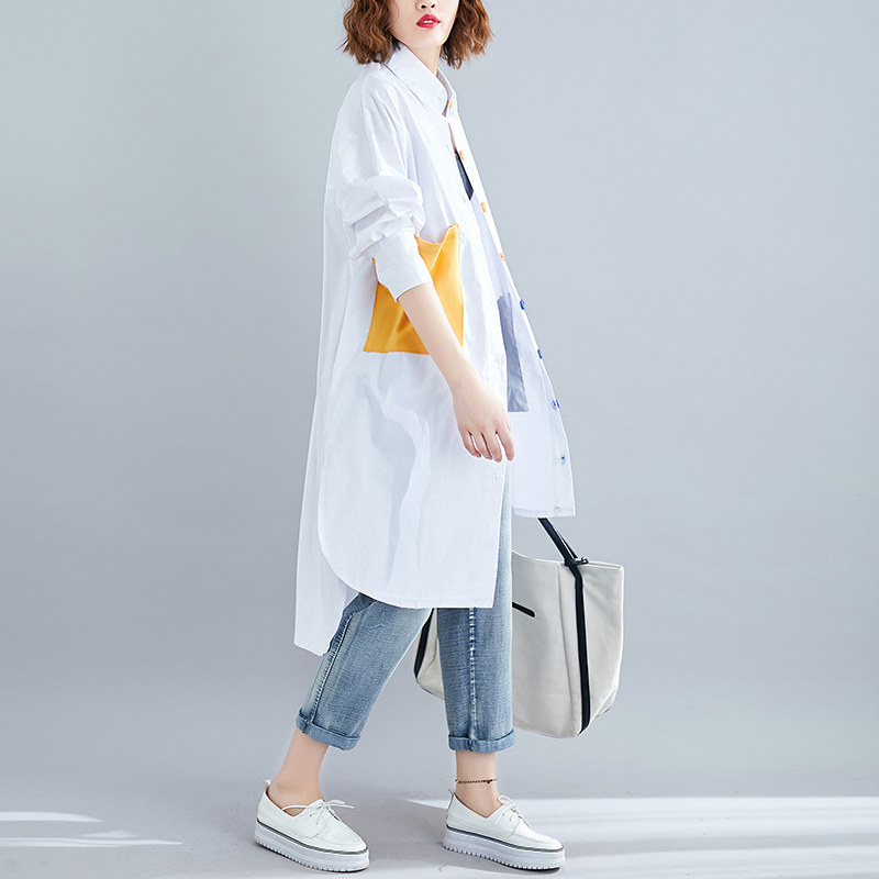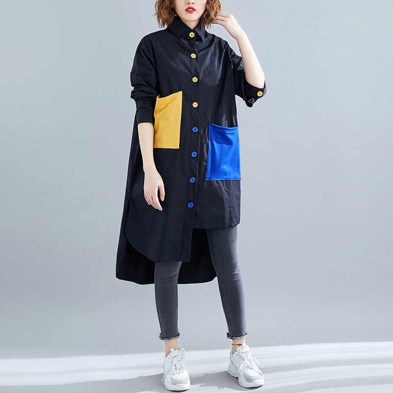 Длинная демисезонная осенняя рубашка, средней длины, оверсайз, в западном стиле