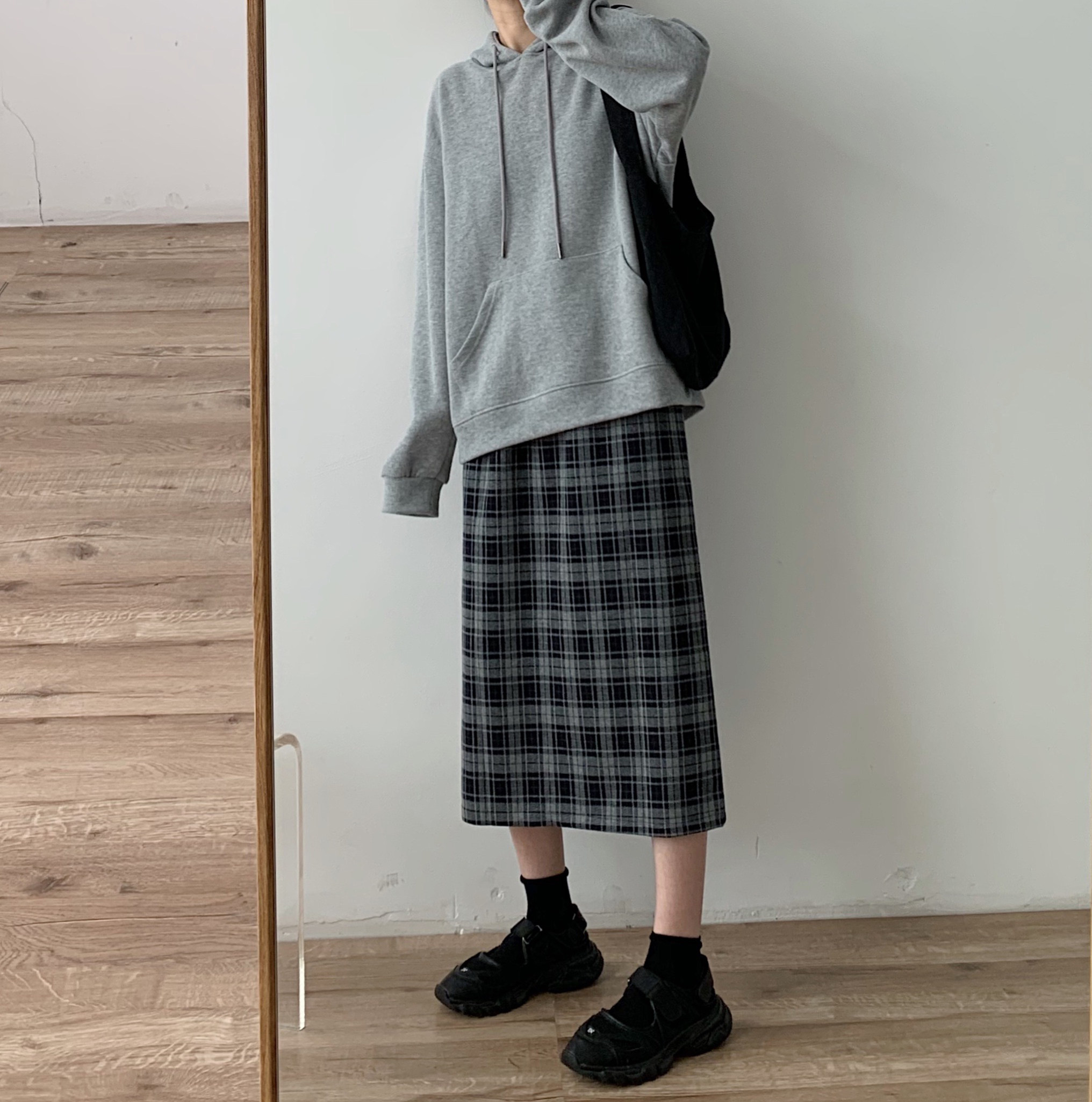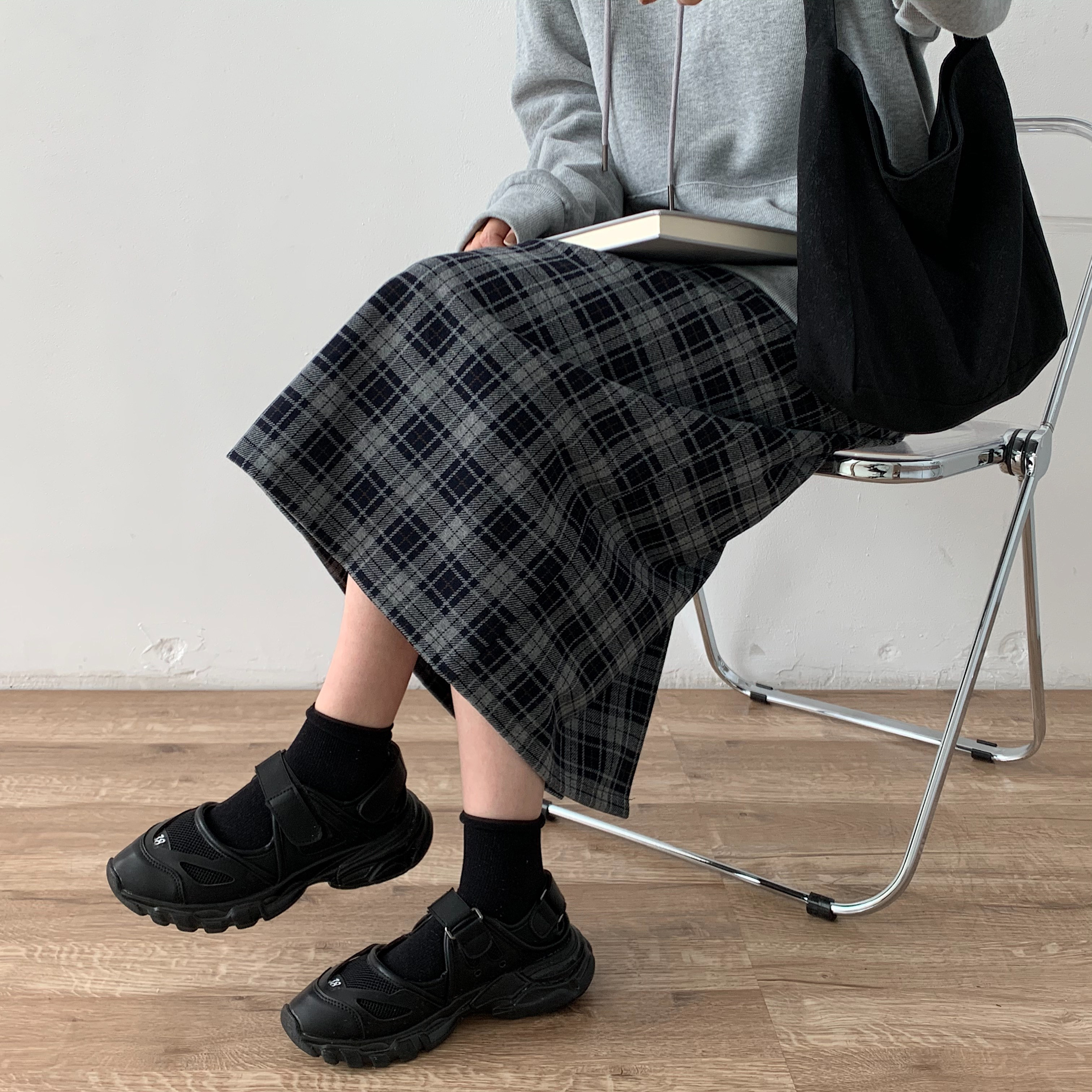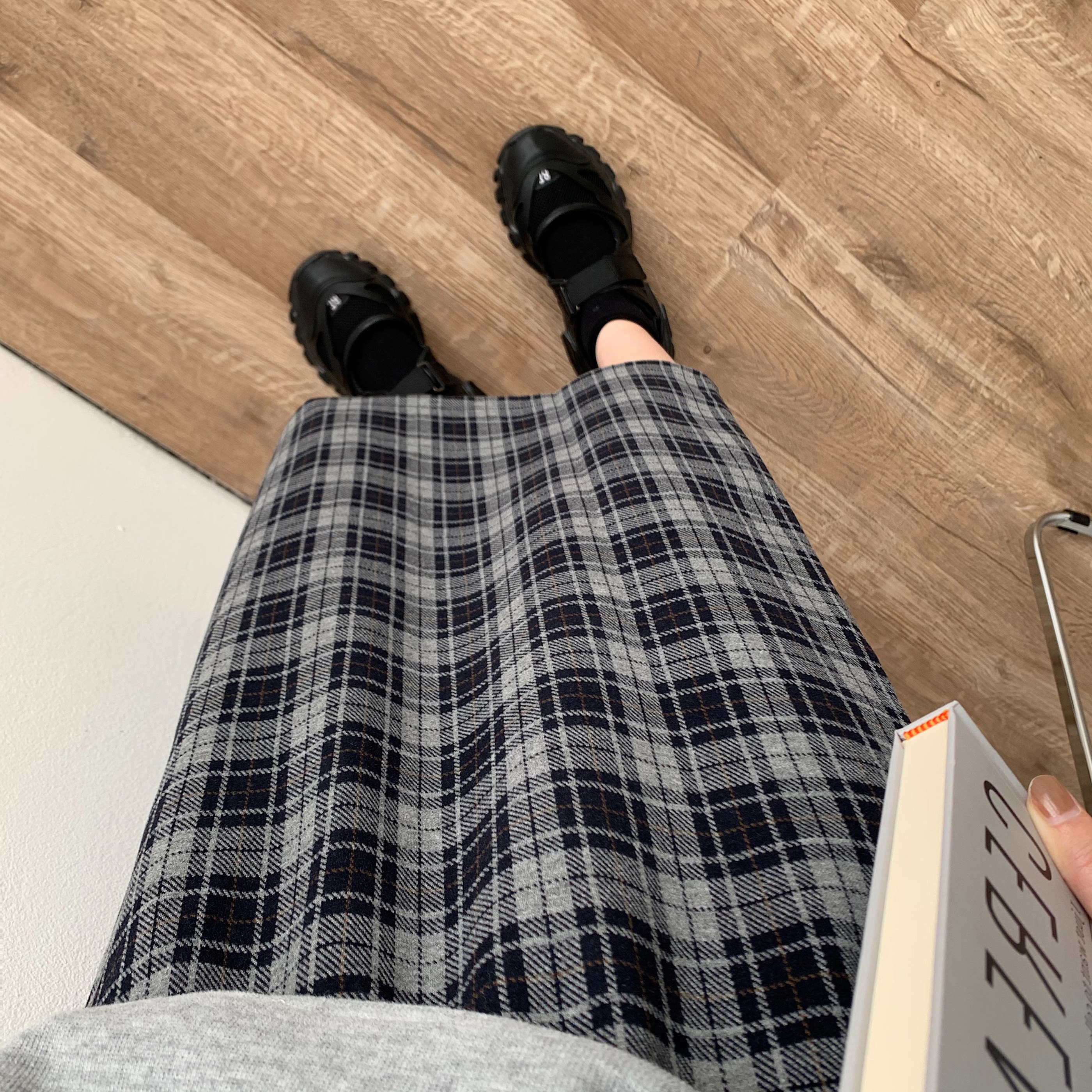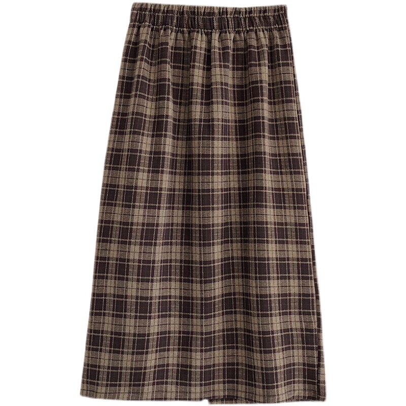 Шерстяная клетчатая демисезонная длинная юбка, А-силуэт, большой размер, свободный прямой крой, эластичная талия, средней длины