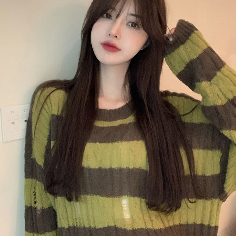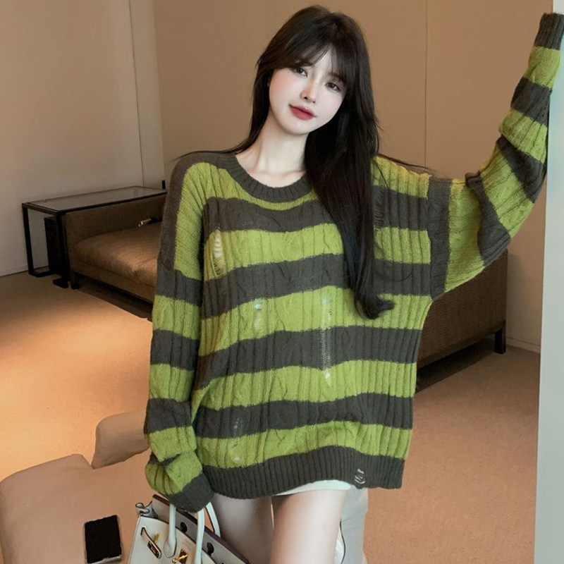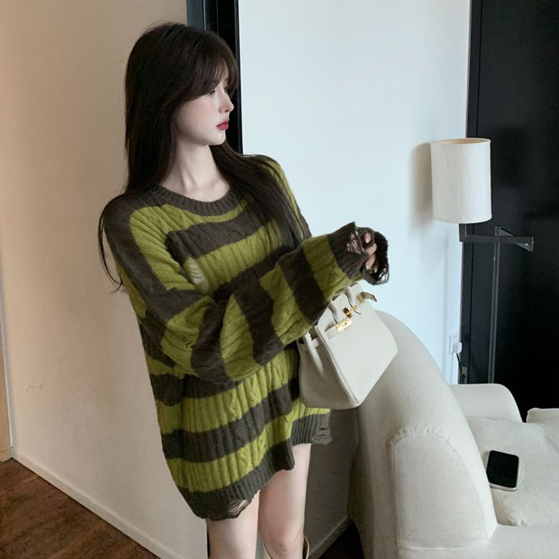 Модный ретро тонкий трикотажный осенний дизайнерский свитер, коллекция 2021, тренд сезона, оверсайз