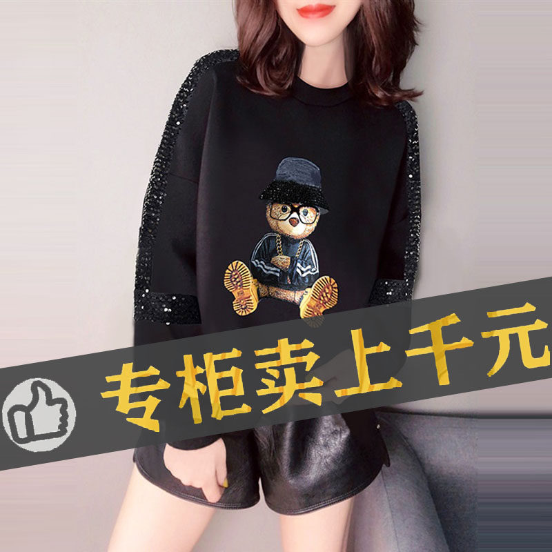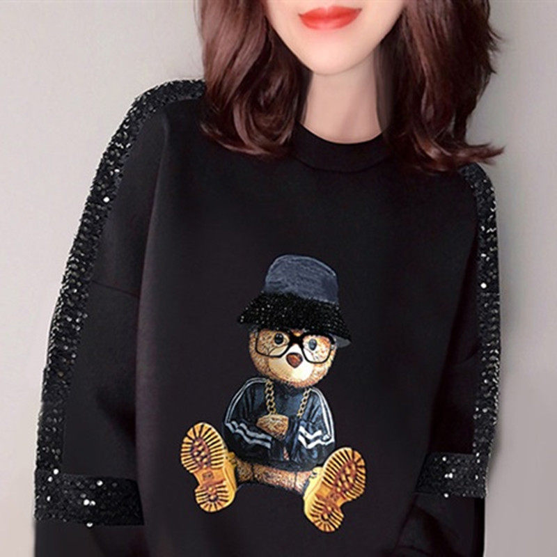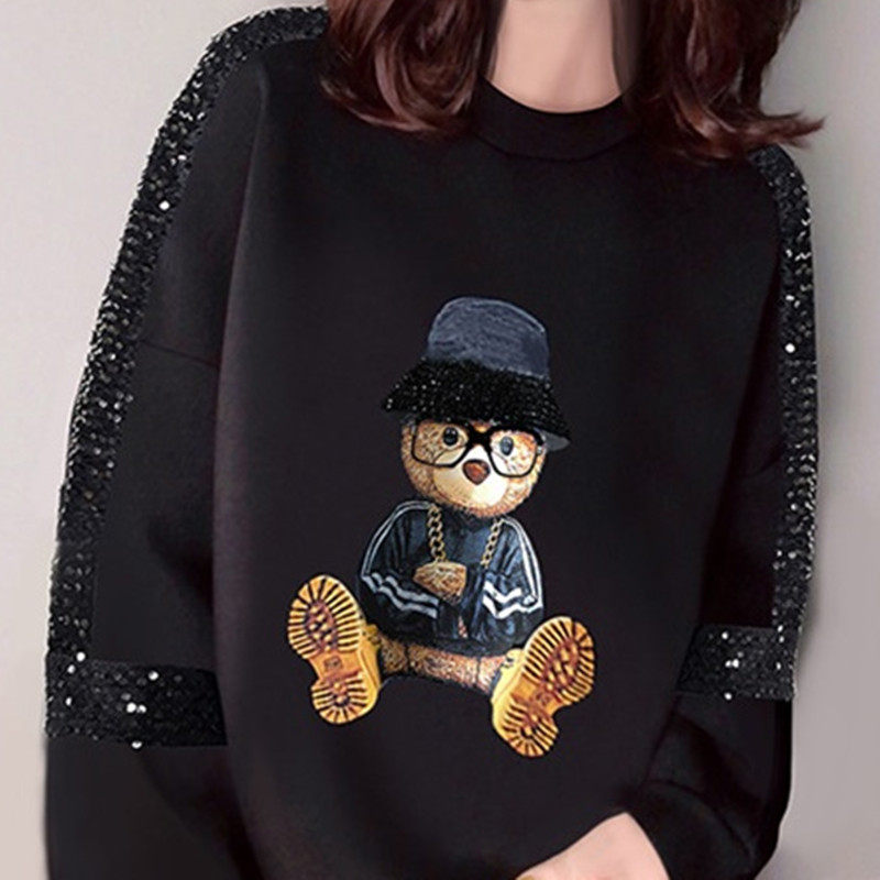 Брендовый осенний мультяшный лонгслив с круглым воротником, с медвежатами