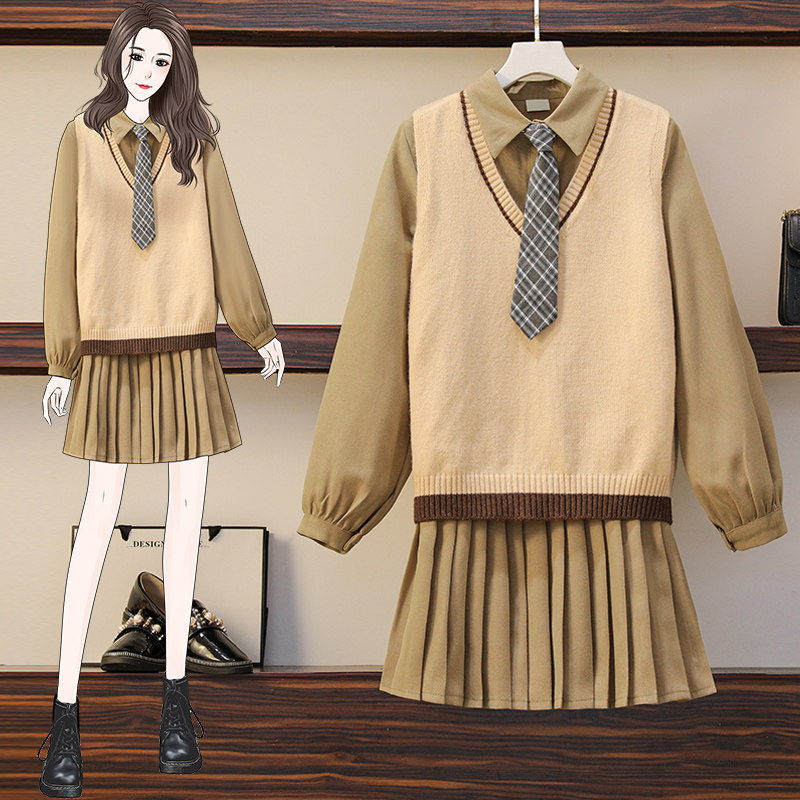Демисезонный трикотажный жилет, платье, комплект, большой размер, коллекция 2021, подходит для полных девушек
