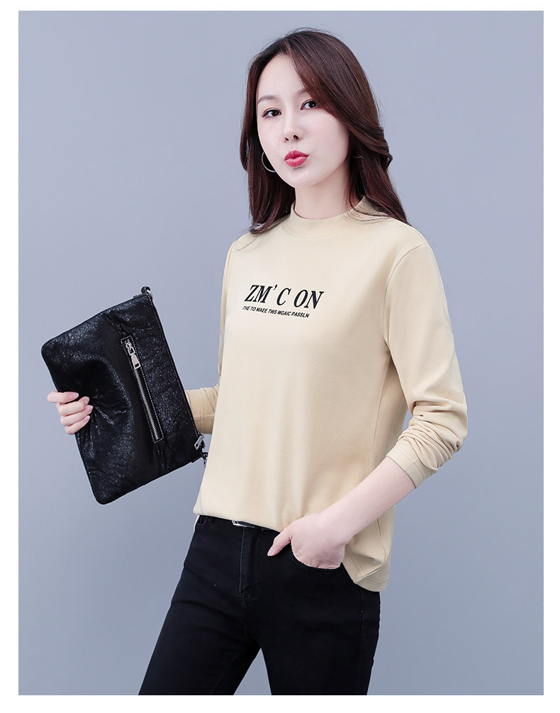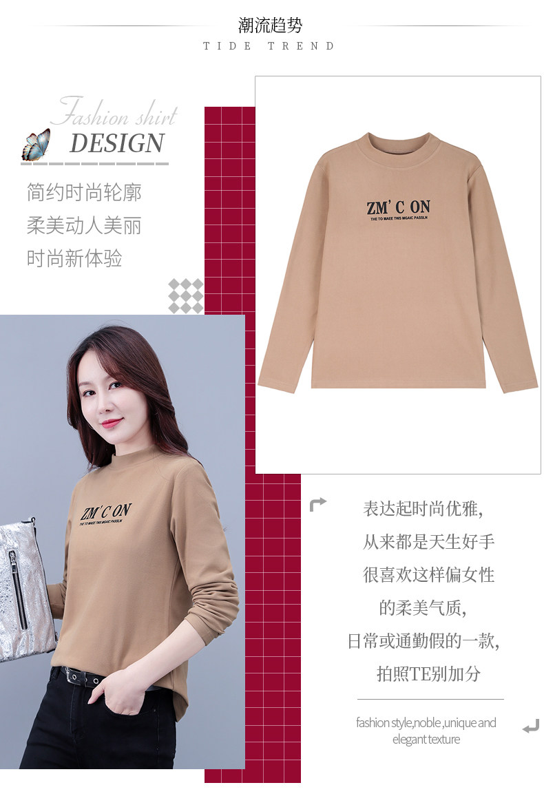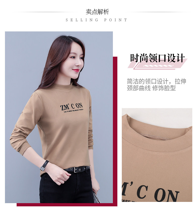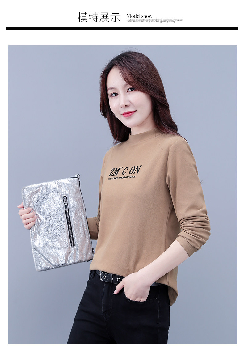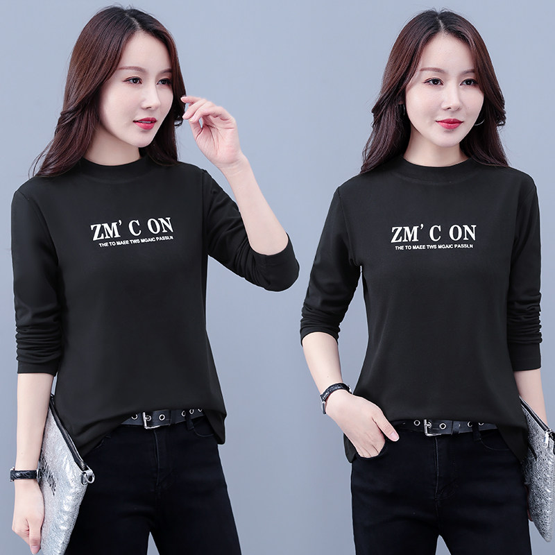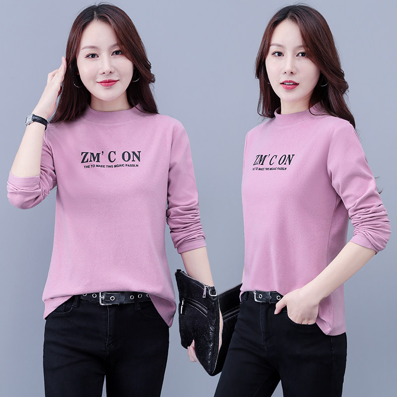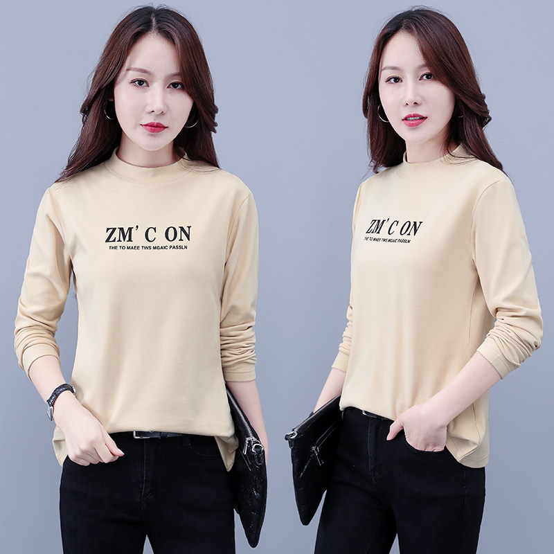 Бархатная базовая приятная телу модная футболка, высокий воротник, в западном стиле, большой размер, 2025 года