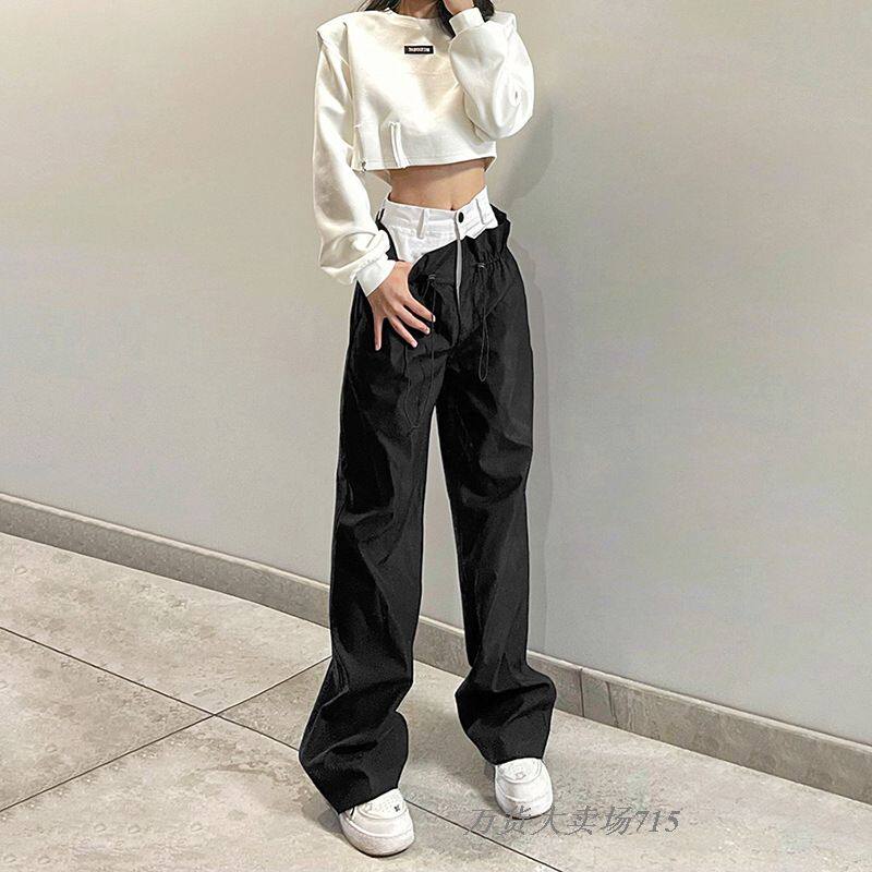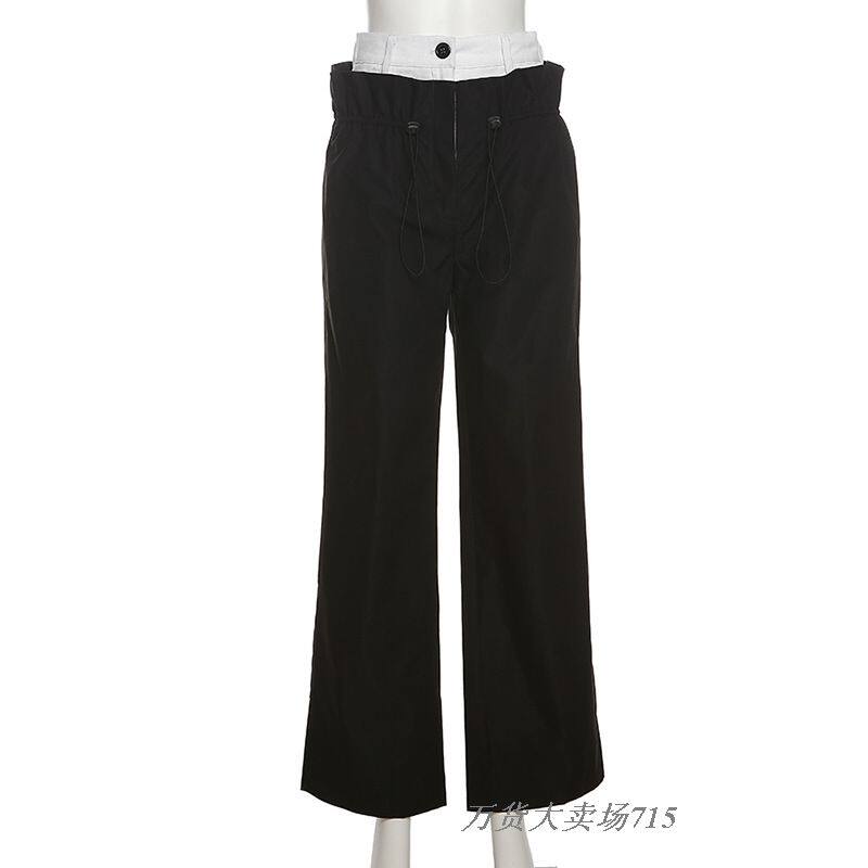 Высокая талия свободные повседневные брюки с высоким содержанием свободных и модных розыгрышных брюк широко