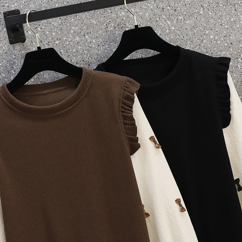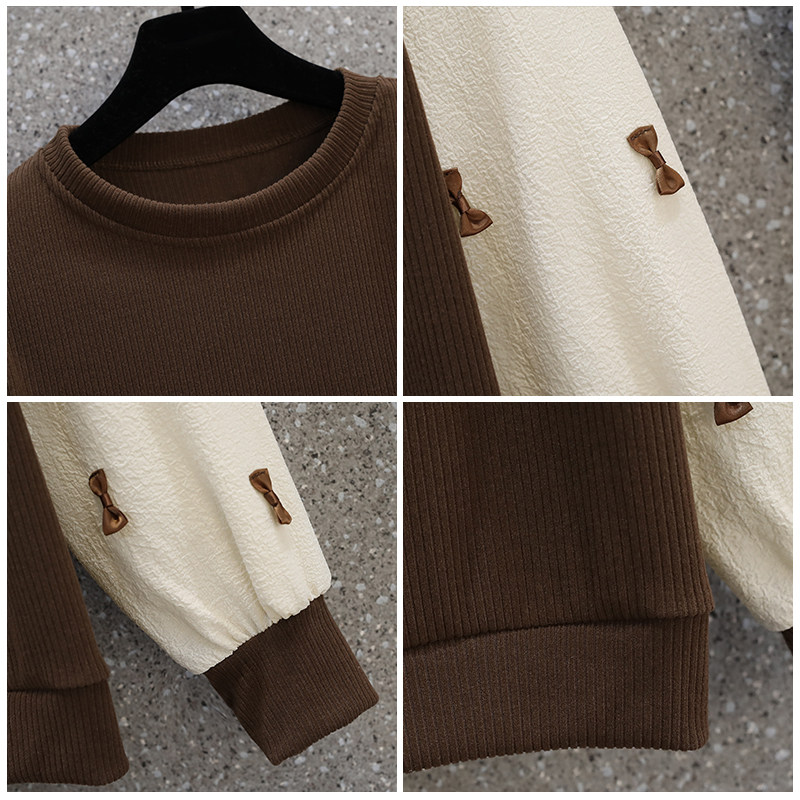 Осенний комплект с бантиком, трикотажный свитер с круглым воротником, большой размер, коллекция 2022, подходит для полных девушек
