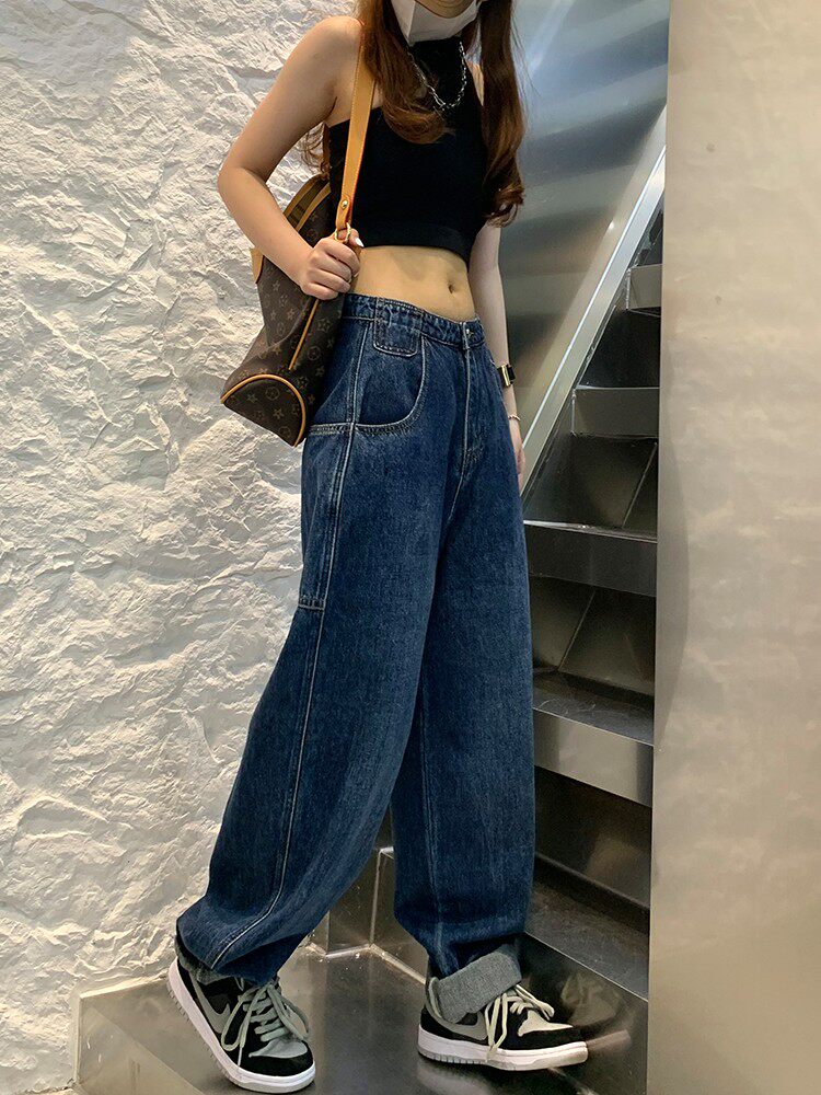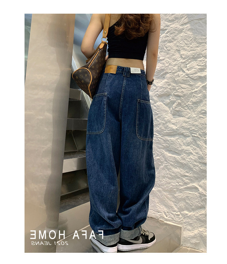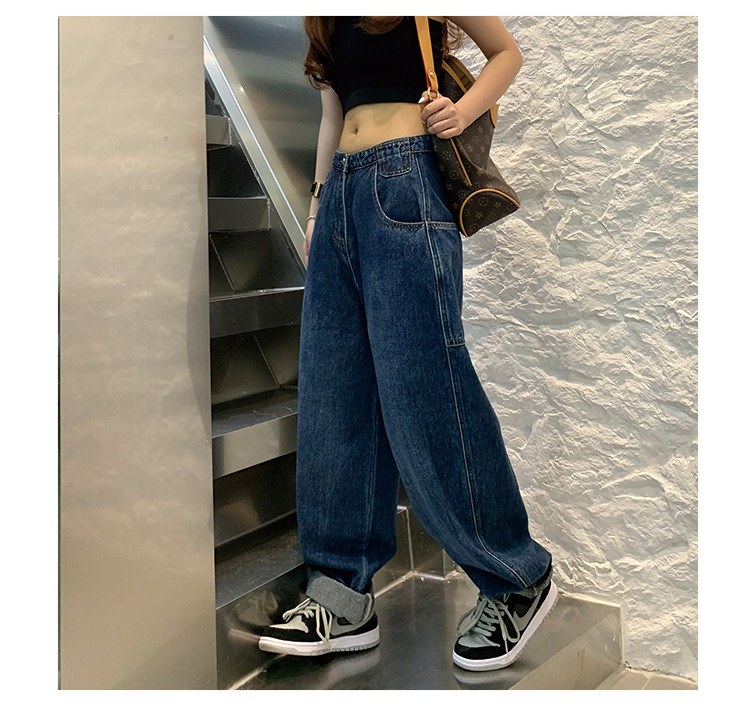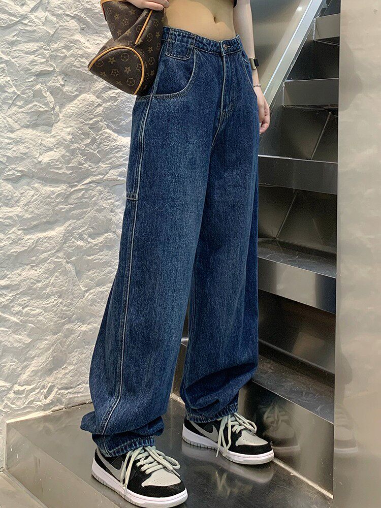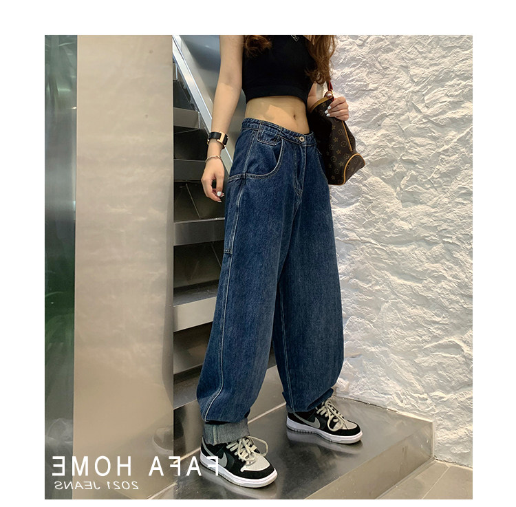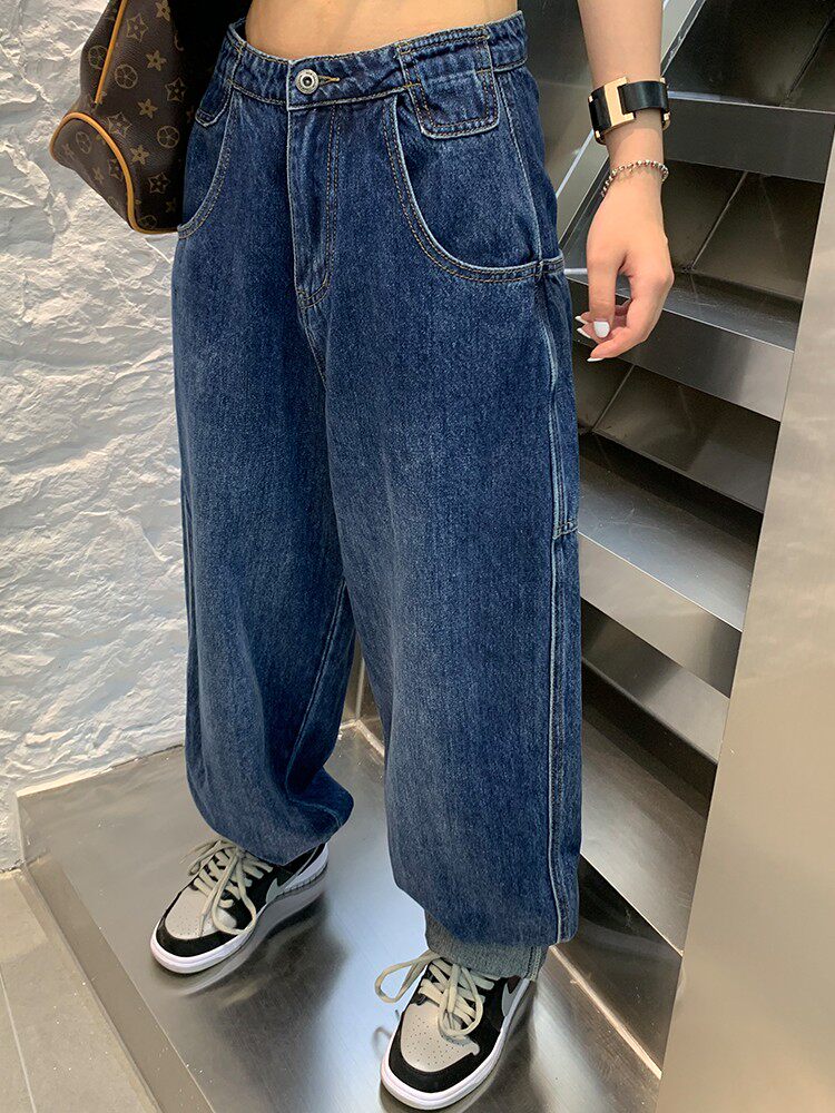 Джинсы, осенние штаны, высокая талия, коллекция 2023, большой размер, свободный прямой крой