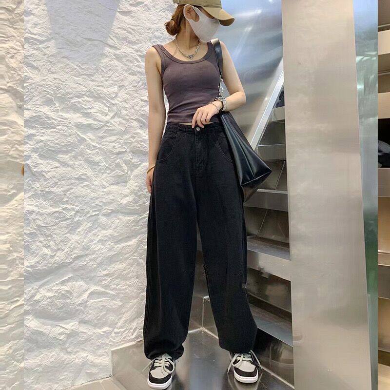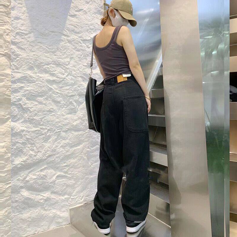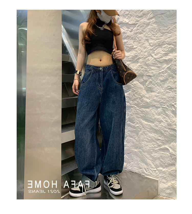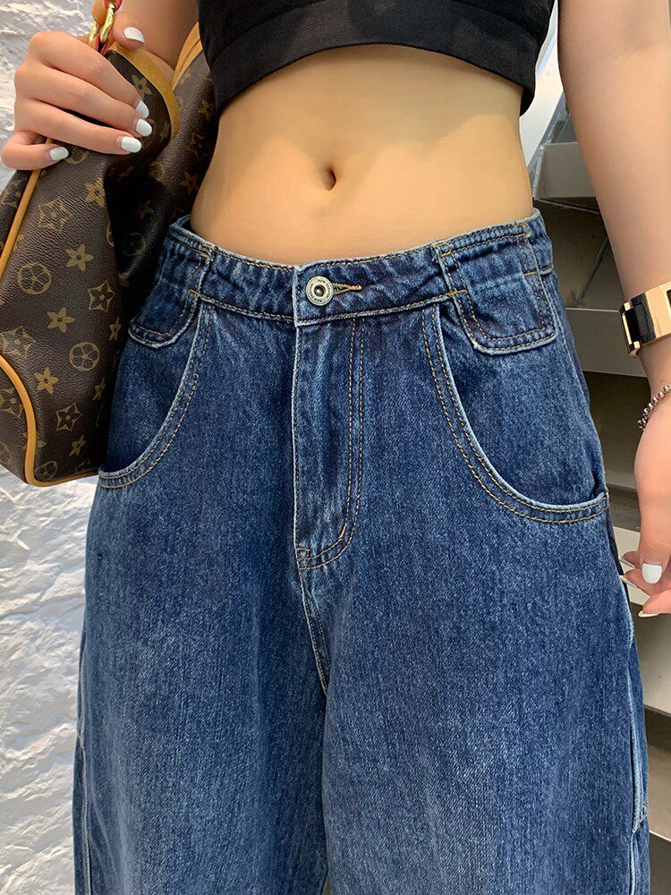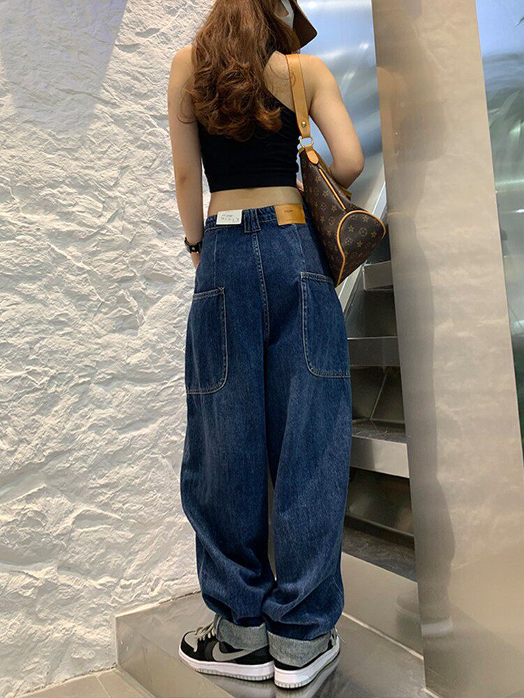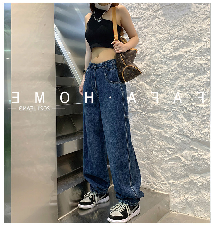 Джинсы, осенние штаны, высокая талия, коллекция 2023, большой размер, свободный прямой крой