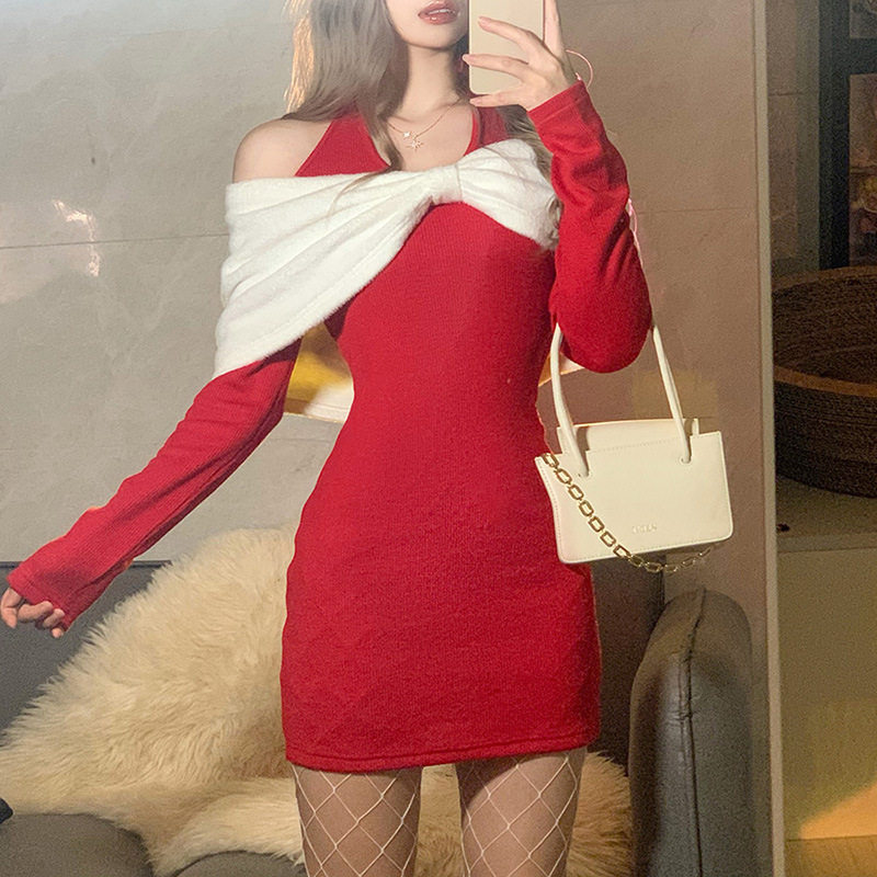 Рождественский женский лук Shawws висят на шее длинное -платье -пилоты рождественское платье для женской шеи