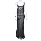 Сексуальная сетчатая перспектива обратно галстук длинная юбка сексуальная сетка перспектива