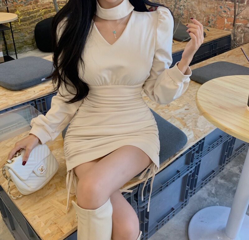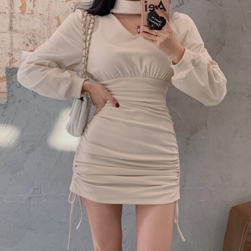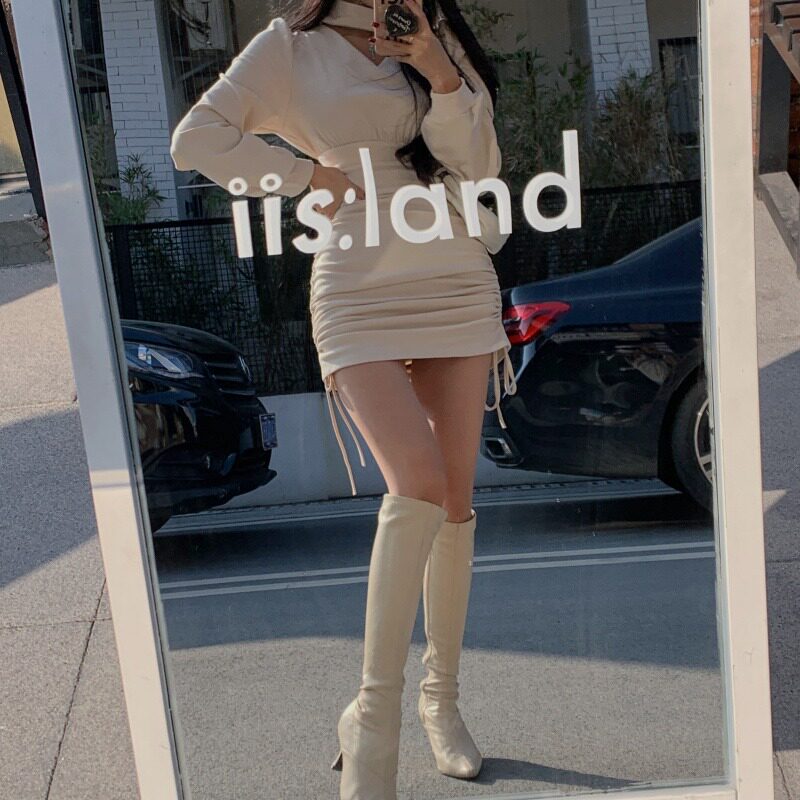 Весенняя юбка, весенний корсет, платье, V-образный вырез, с акцентом на бедрах, коллекция 2022, популярно в интернете, на шнурках