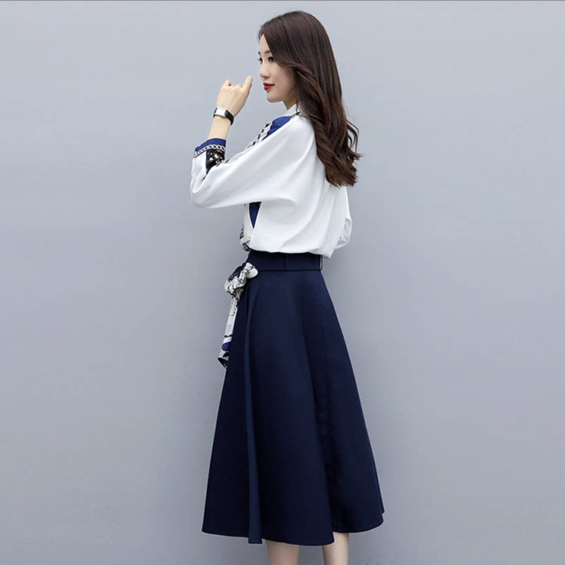 Осеннее платье, рубашка, юбка, комплект, 2024 года, городской стиль, А-силуэт, большой размер, в западном стиле