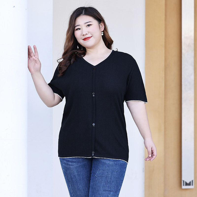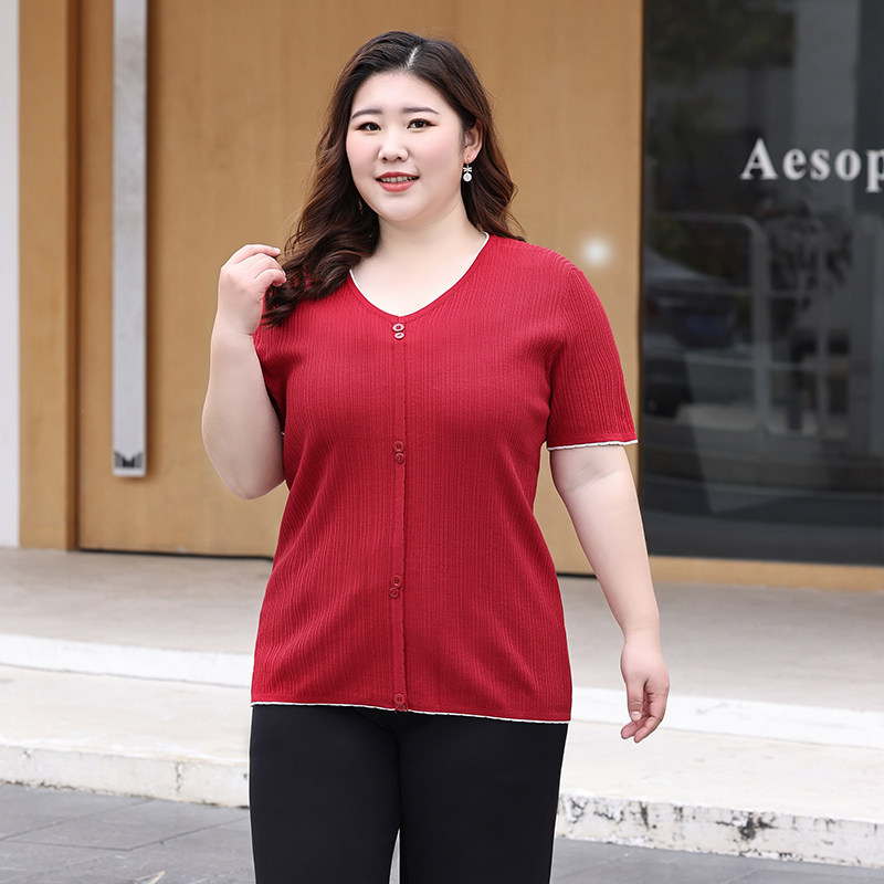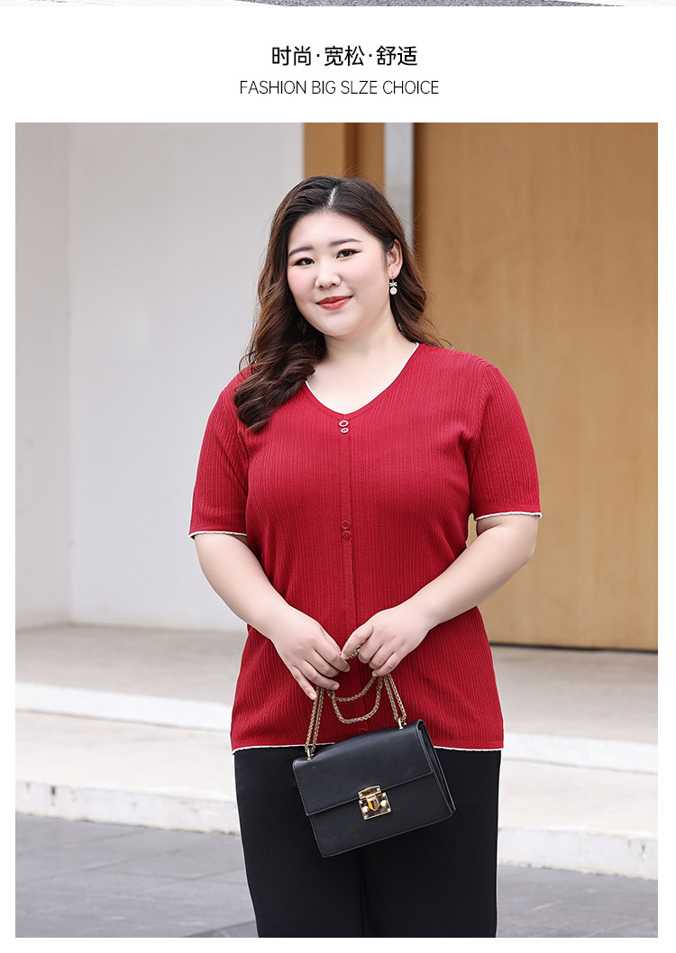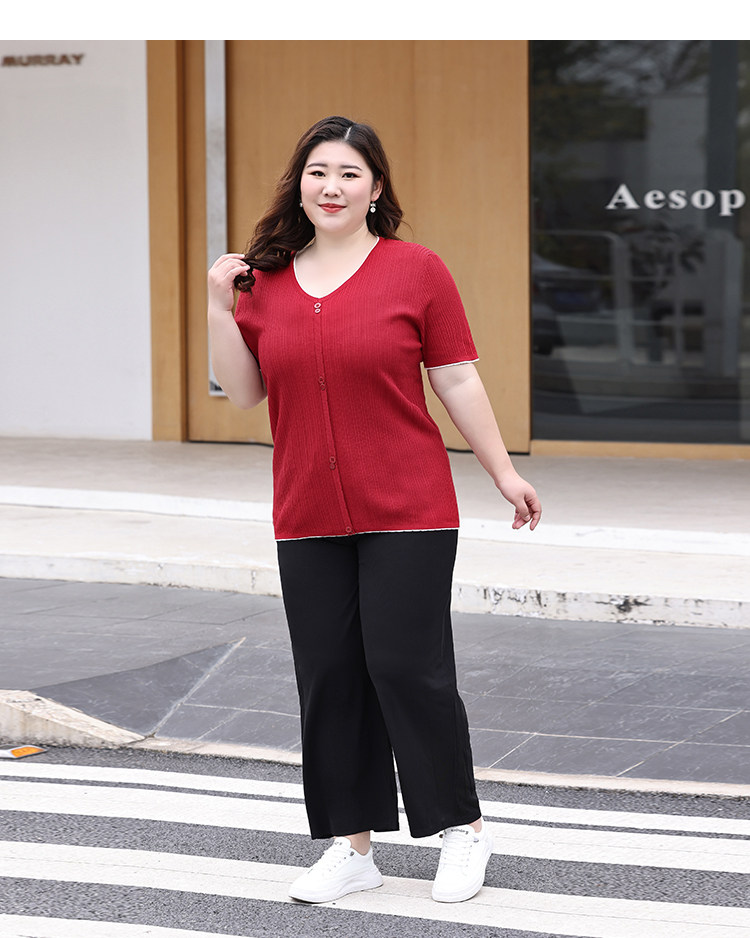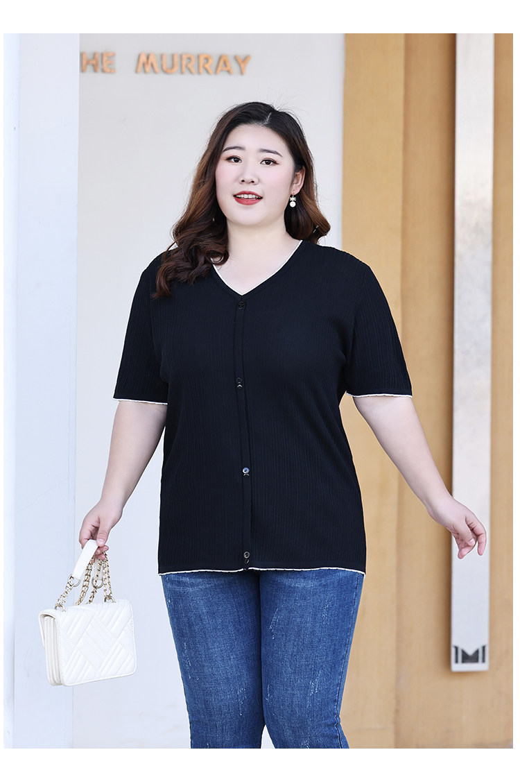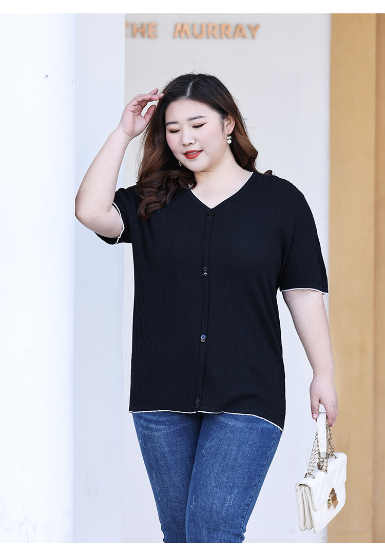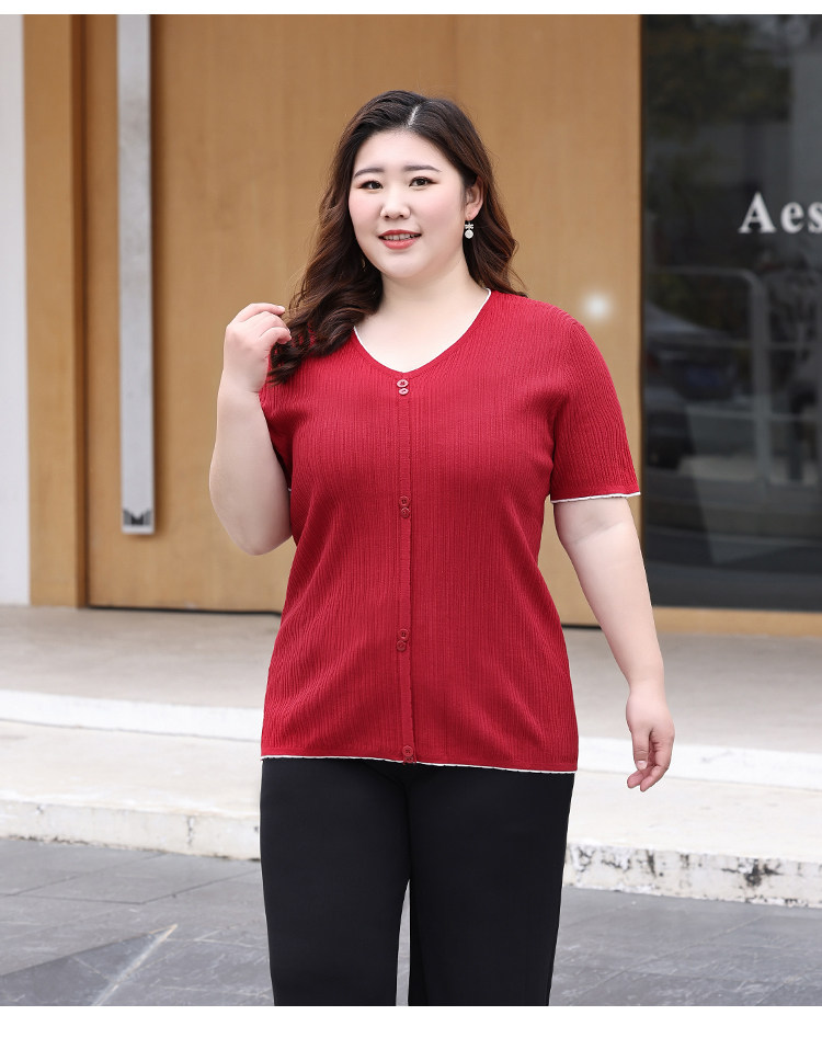 Трикотажный летний свитер, большой размер, V-образный вырез