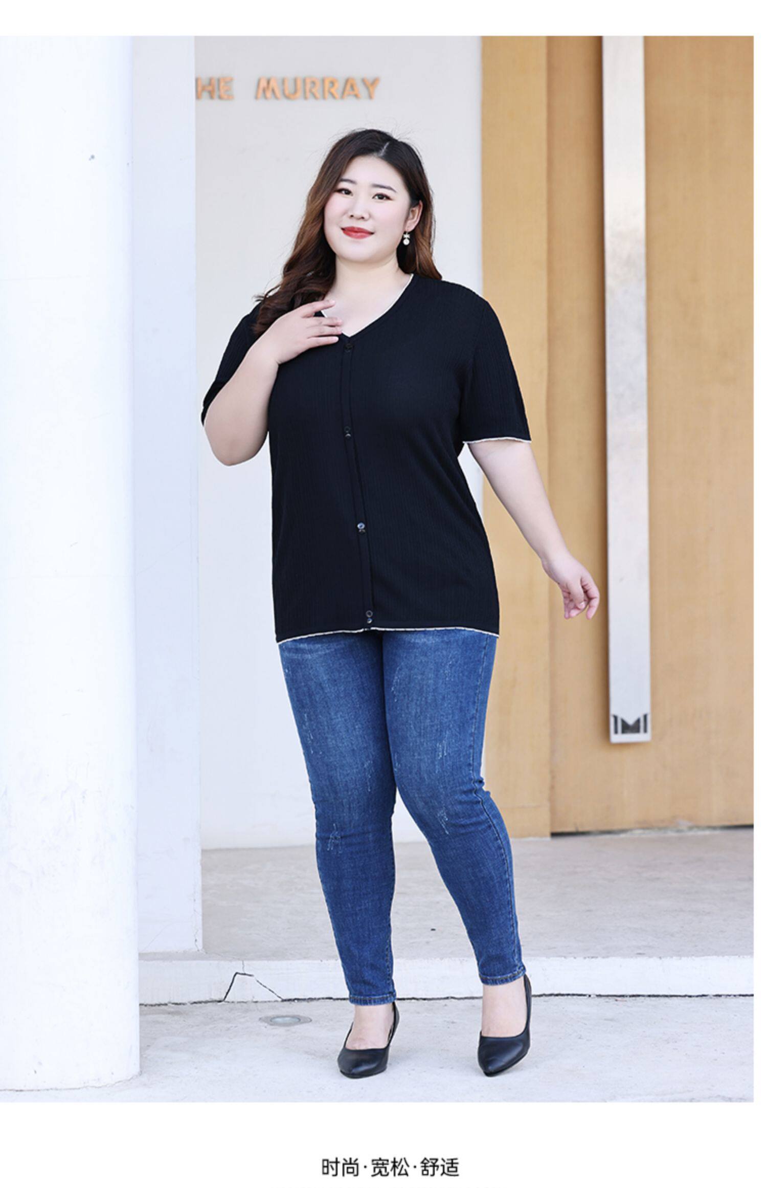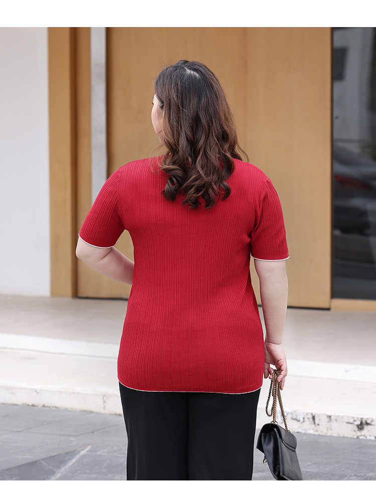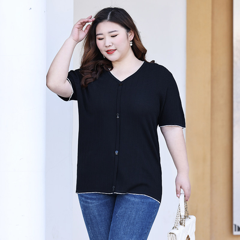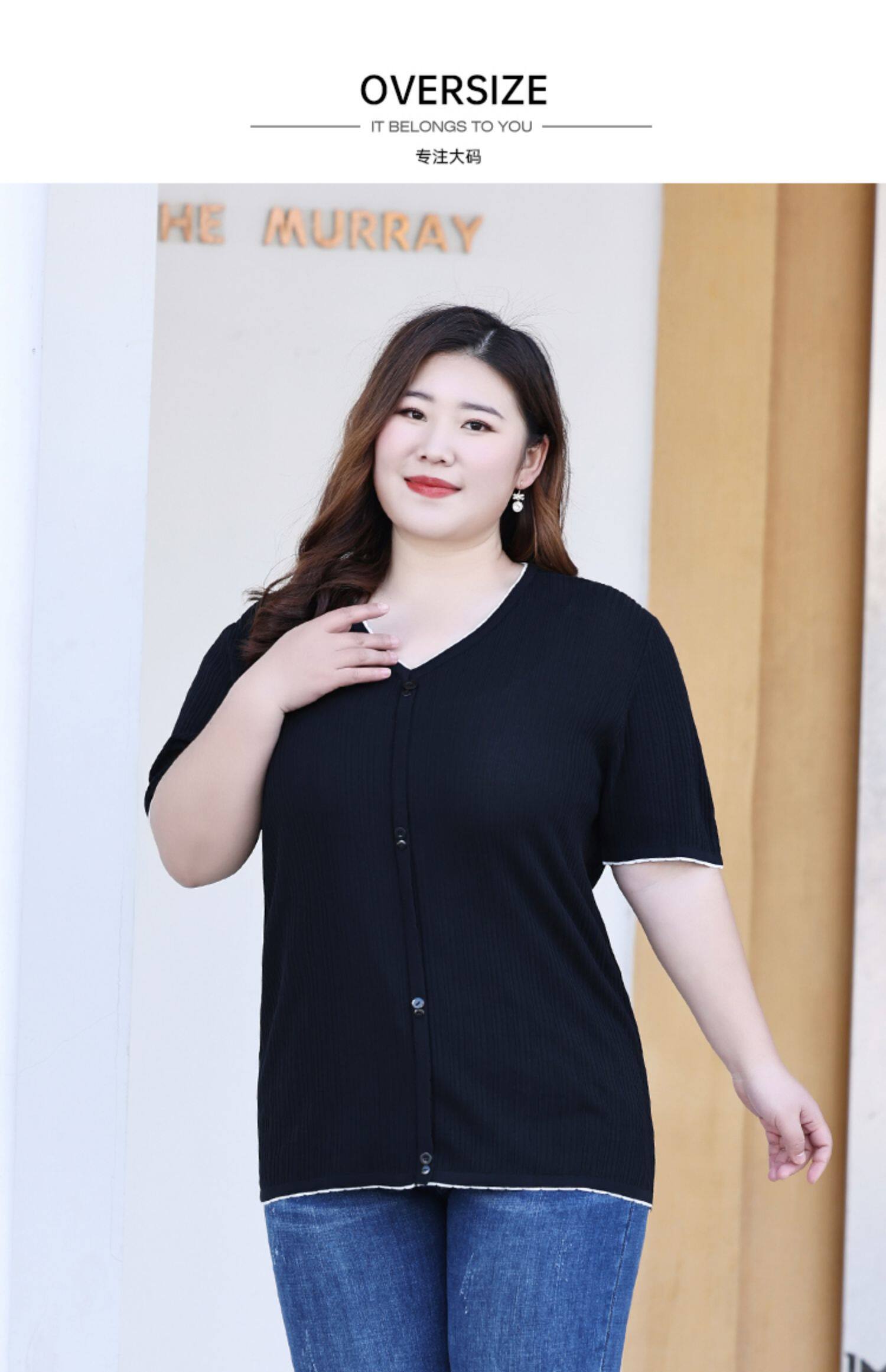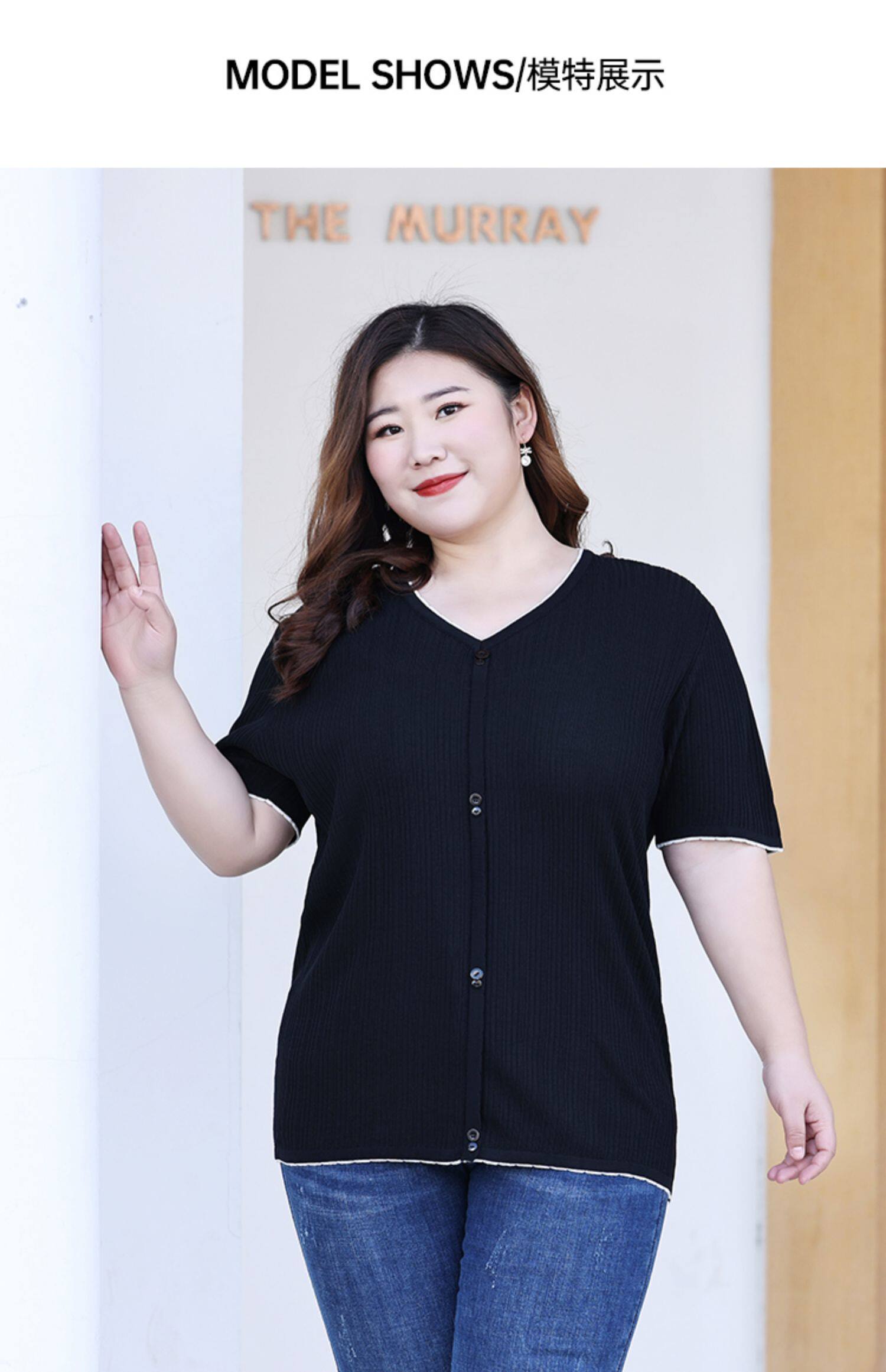 Трикотажный летний свитер, большой размер, V-образный вырез
