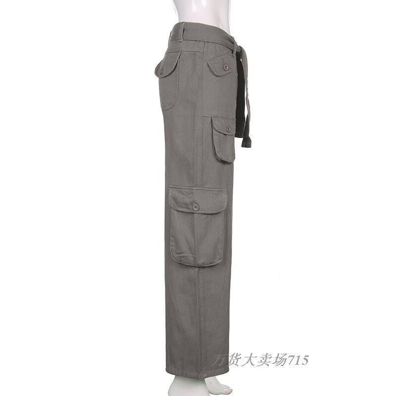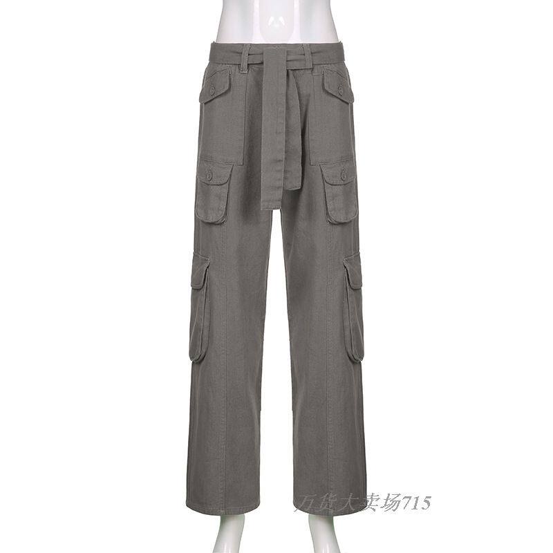 Низко -диастская модная отдел кружевные джинсы BF Wind Multi -Cpocket Bunders Fashion Lace Up Jeans