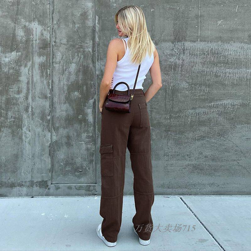 Модные повседневные джинсы сплошной карманные брюки с заглушением джинсы Longraight Jeans