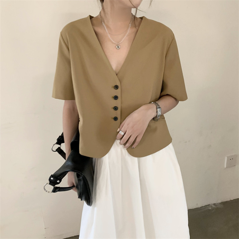 Короткая летняя рубашка, ретро тонкий пиджак классического кроя, большой размер, свободный крой, V-образный вырез