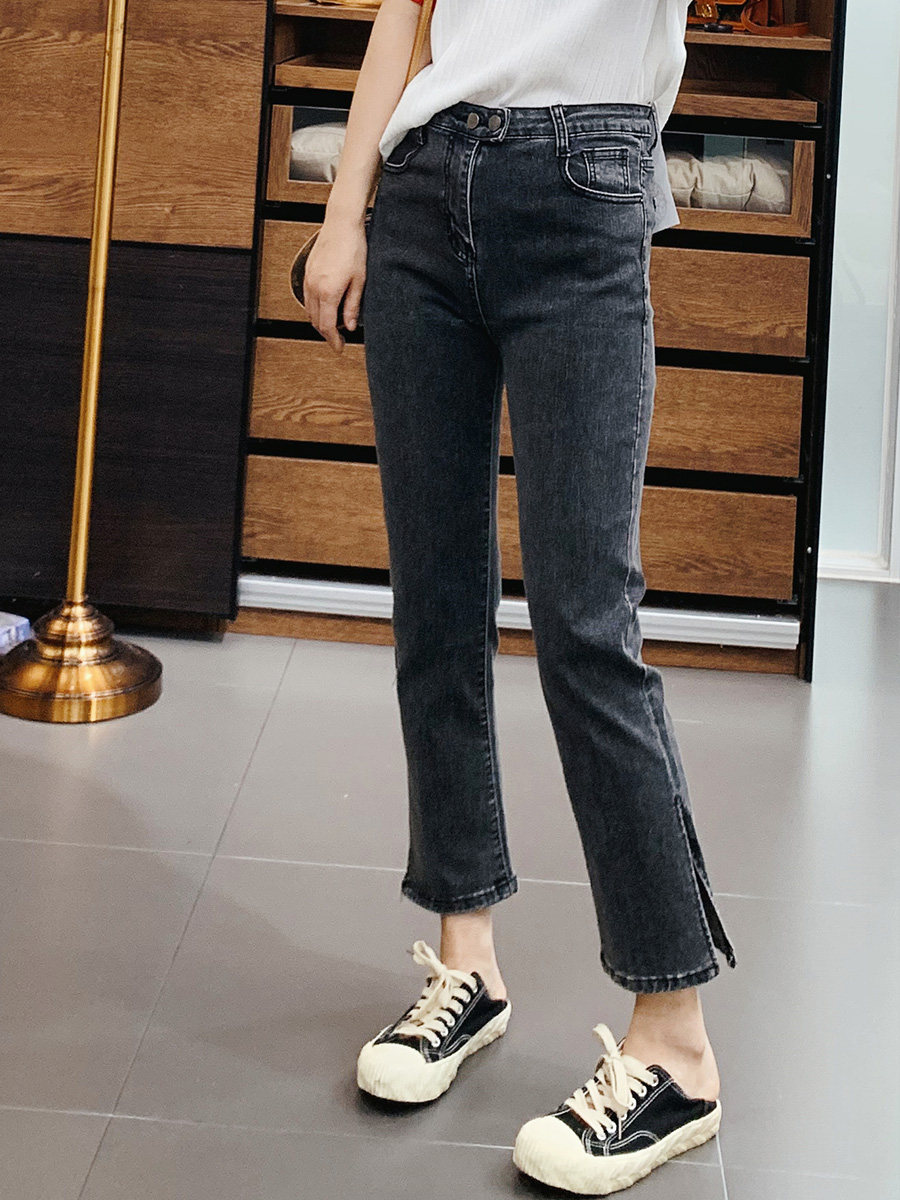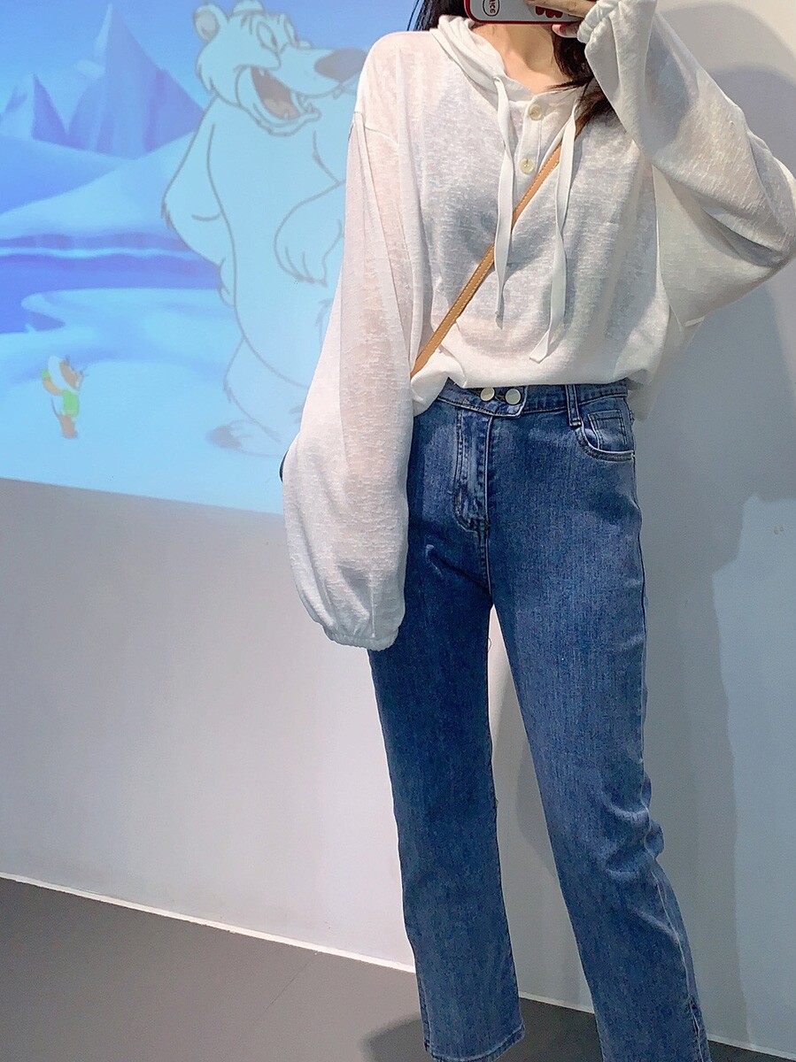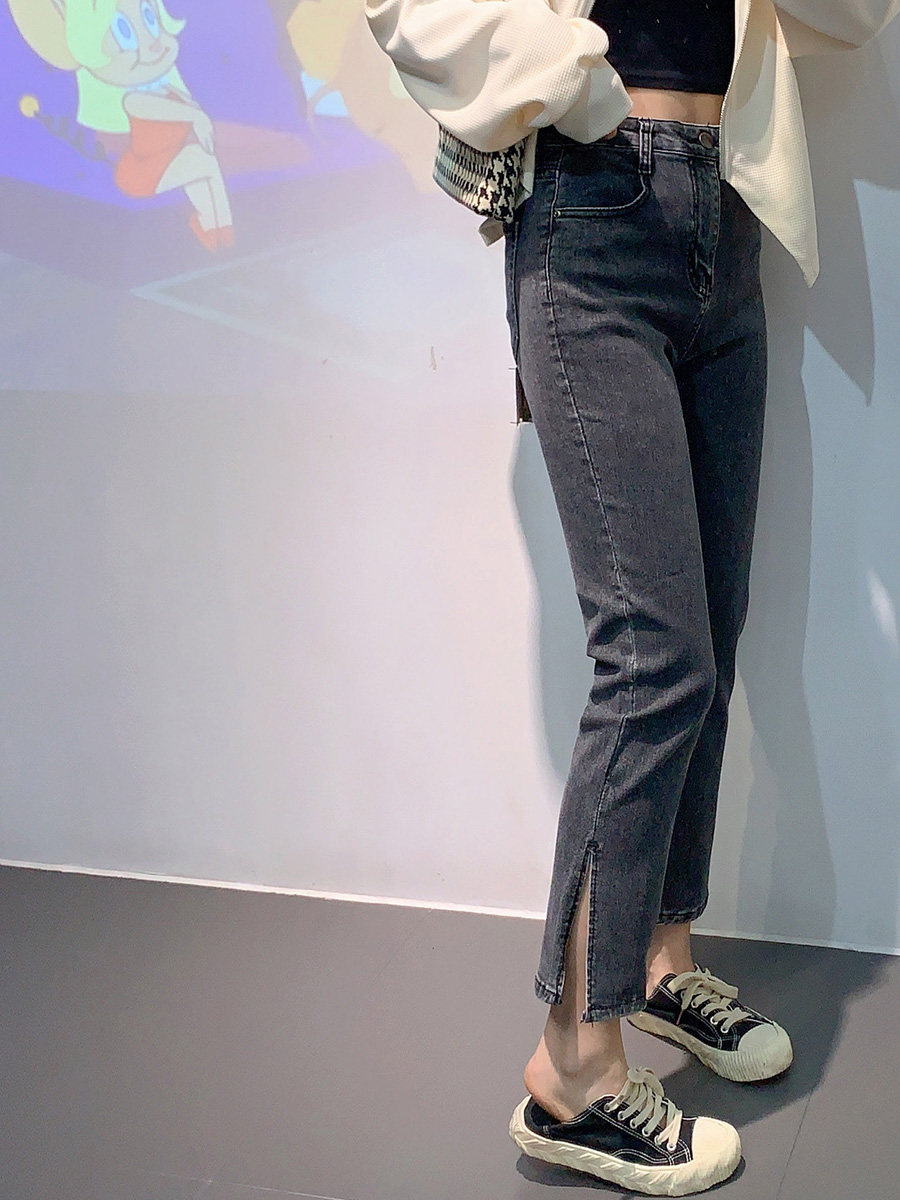 Весенние джинсы, летние эластичные штаны, большой размер, высокая талия, свободный прямой крой