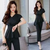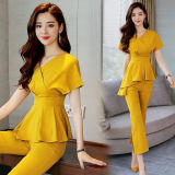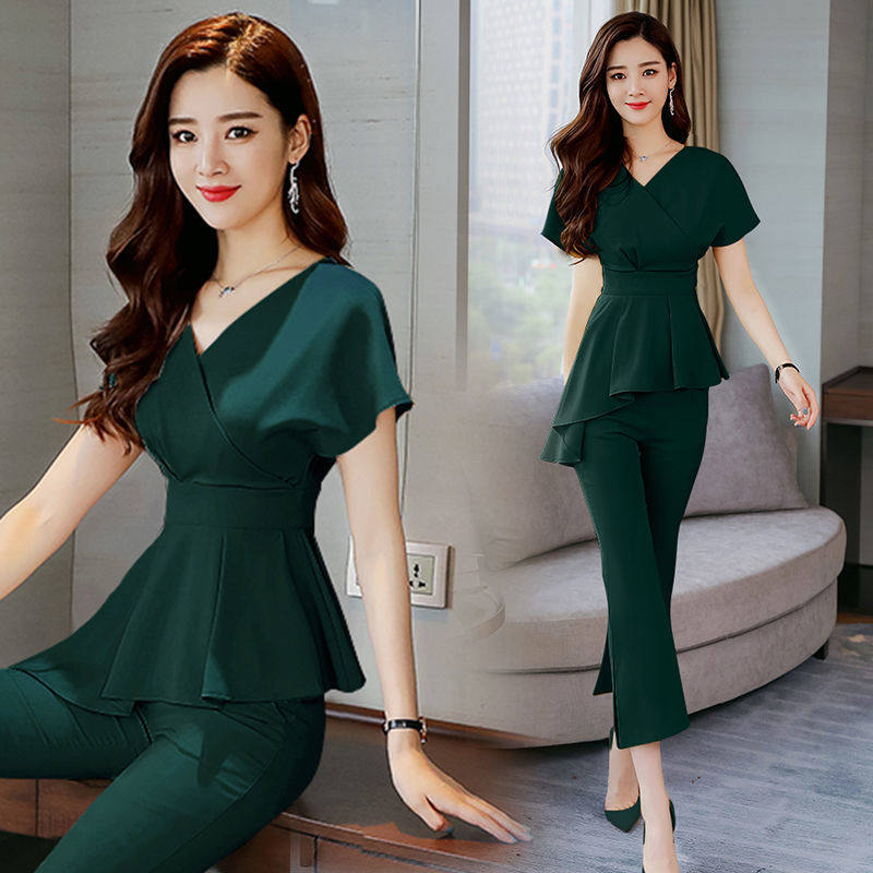 Осенний летний модный комплект, по фигуре, в западном стиле, короткий рукав