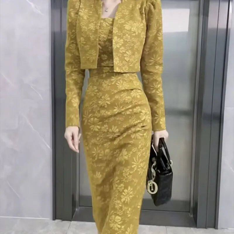 Элегантный комплект, приталенное платье, 2024 года, осенний