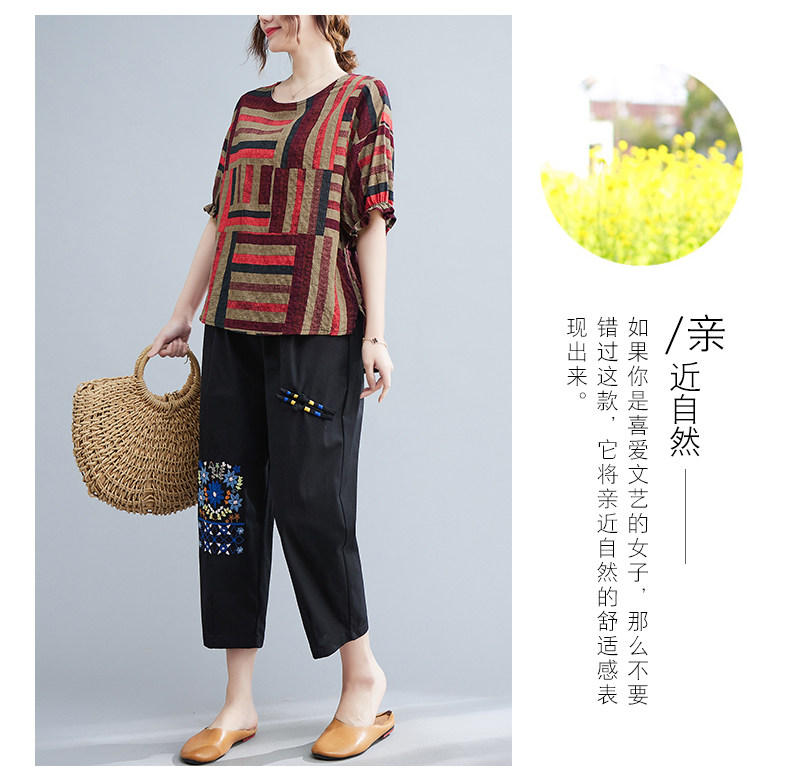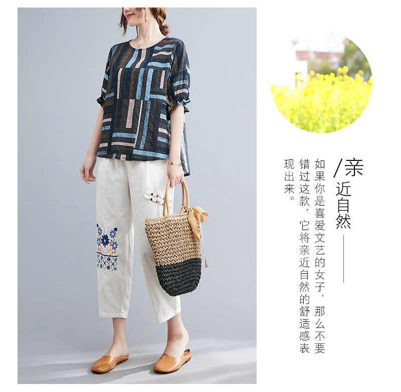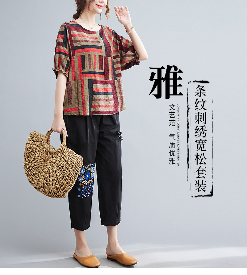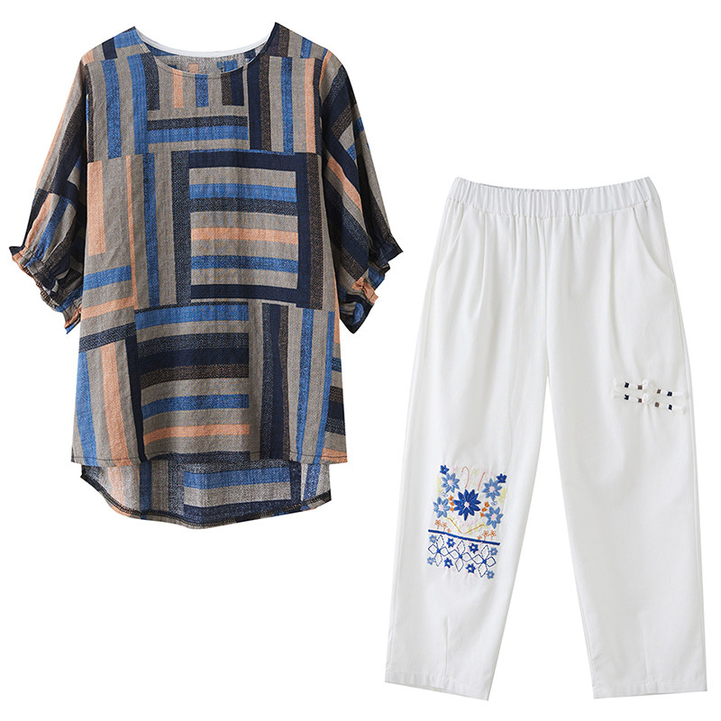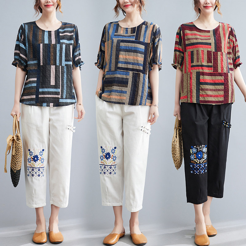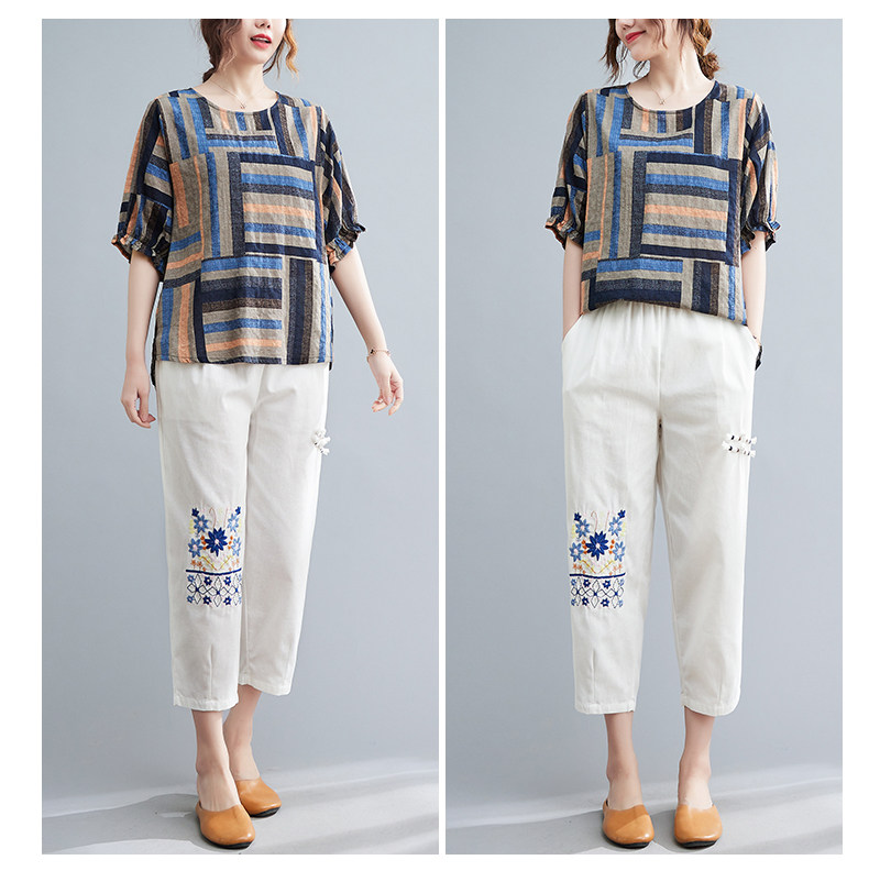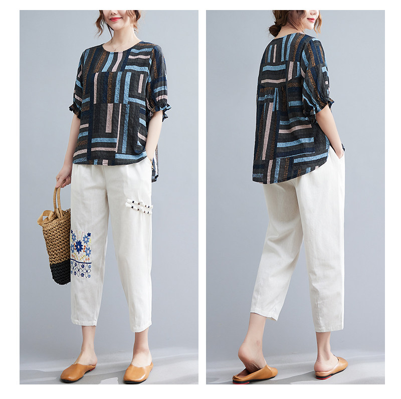 Летний ретро комплект, большой размер, в корейском стиле, в западном стиле, из хлопка и льна