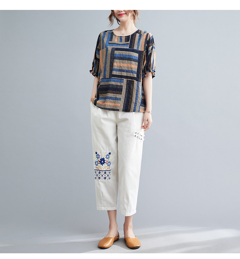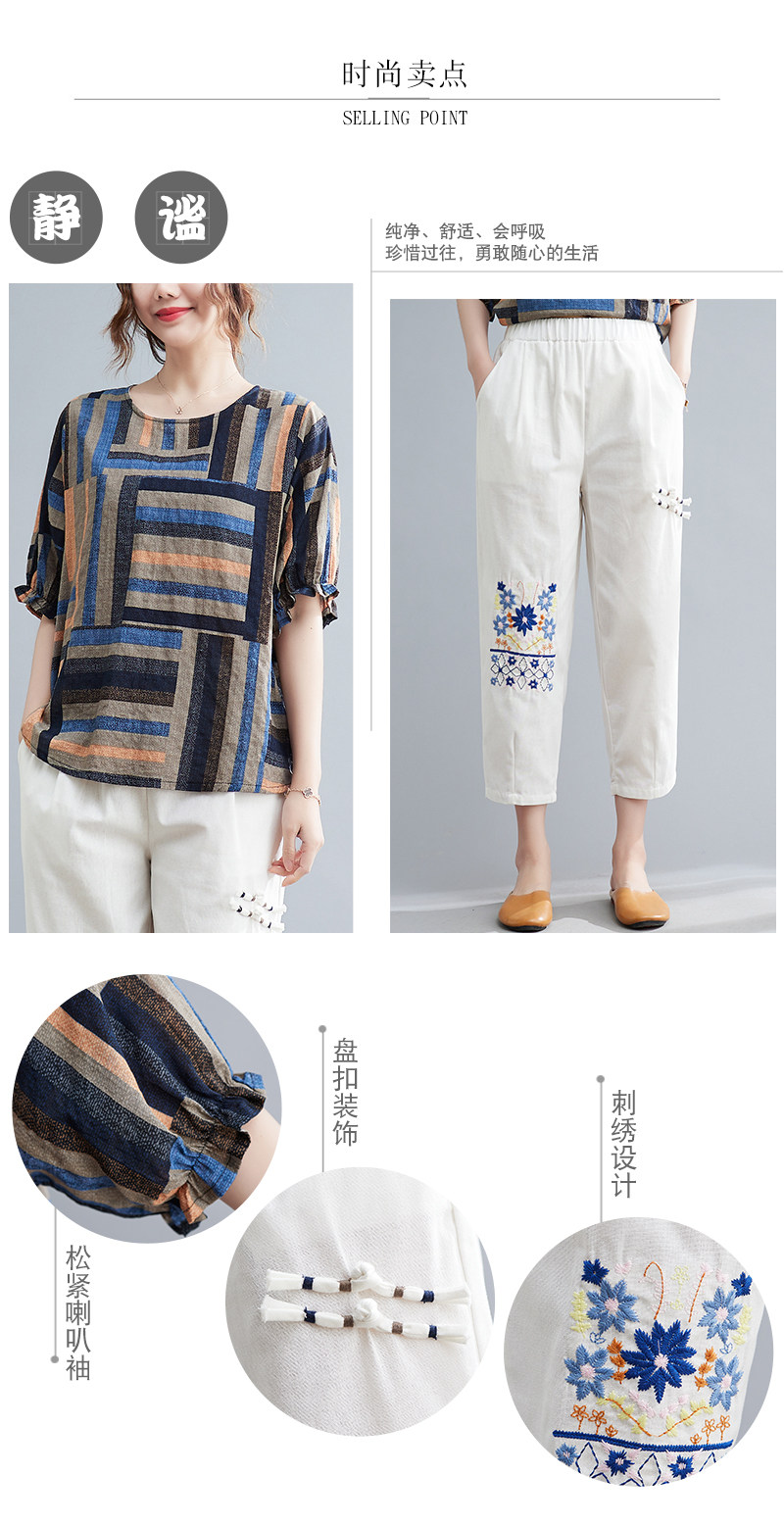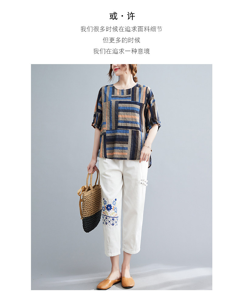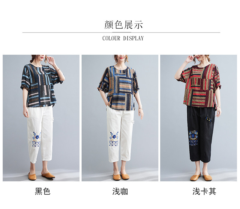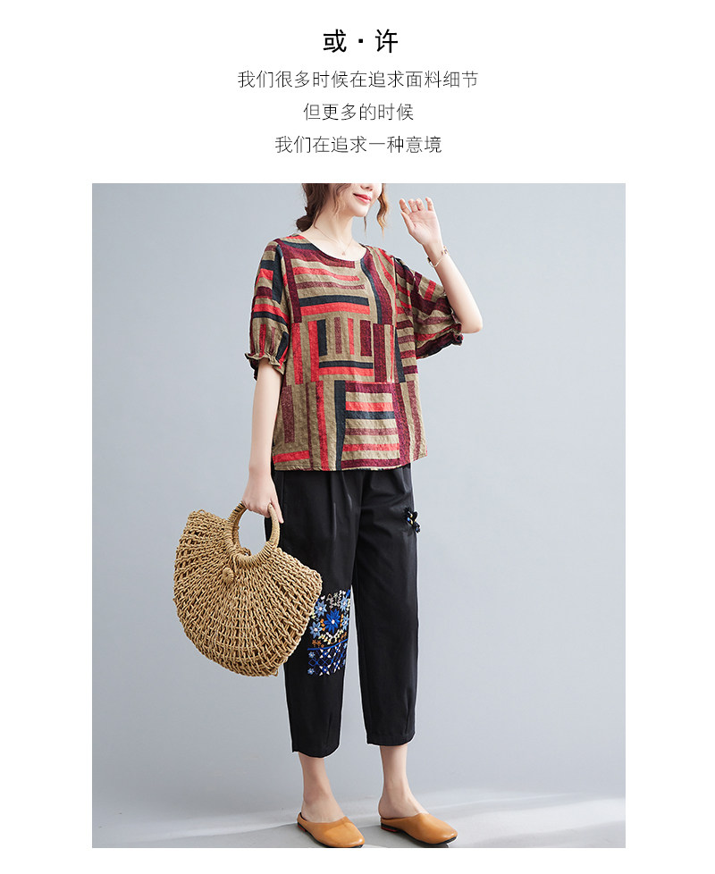Летний ретро комплект, большой размер, в корейском стиле, в западном стиле, из хлопка и льна