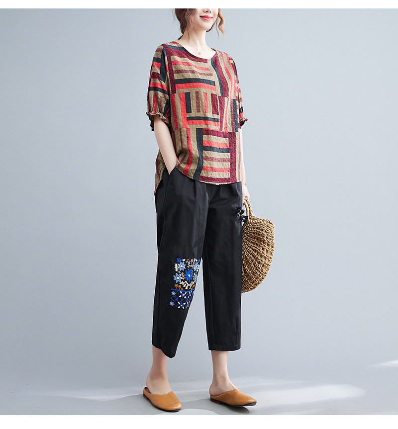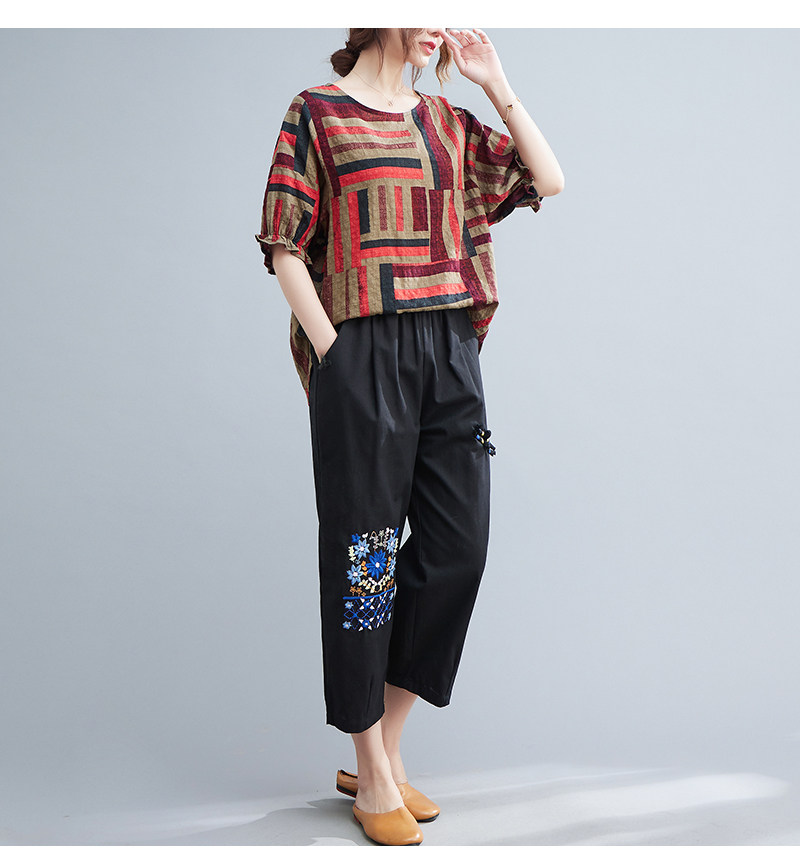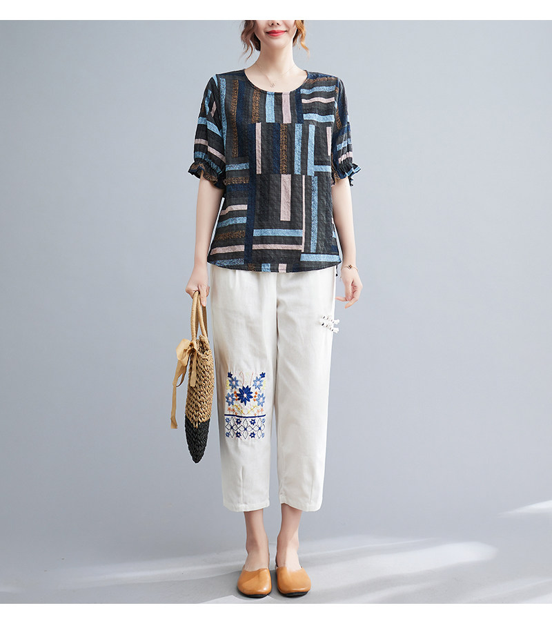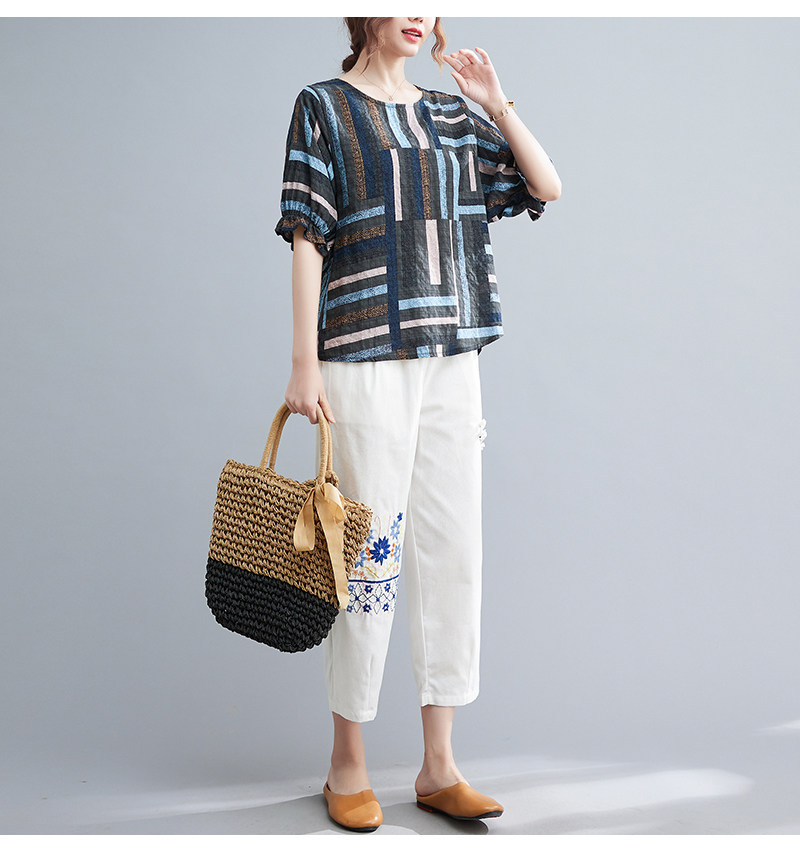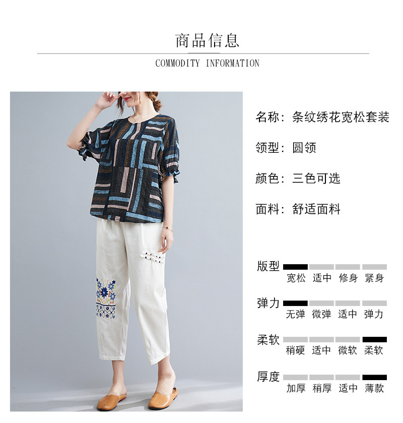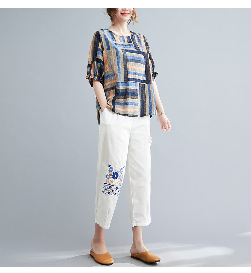 Летний ретро комплект, большой размер, в корейском стиле, в западном стиле, из хлопка и льна