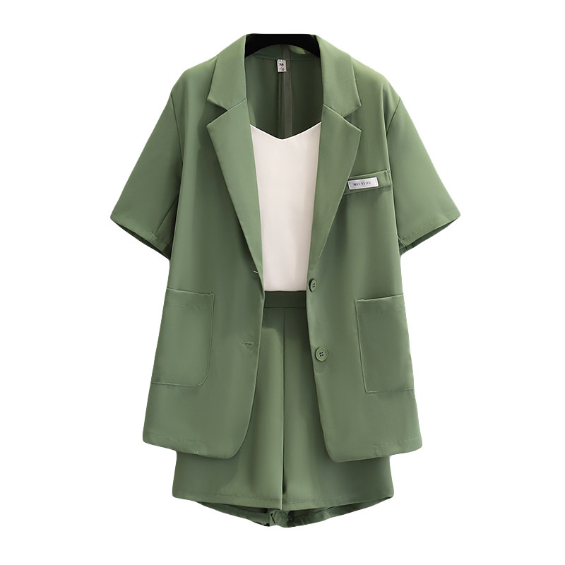 Летняя одежда, классический костюм для отдыха, шорты, комплект, большой размер, городской стиль, подходит для полных девушек, 3 предмета