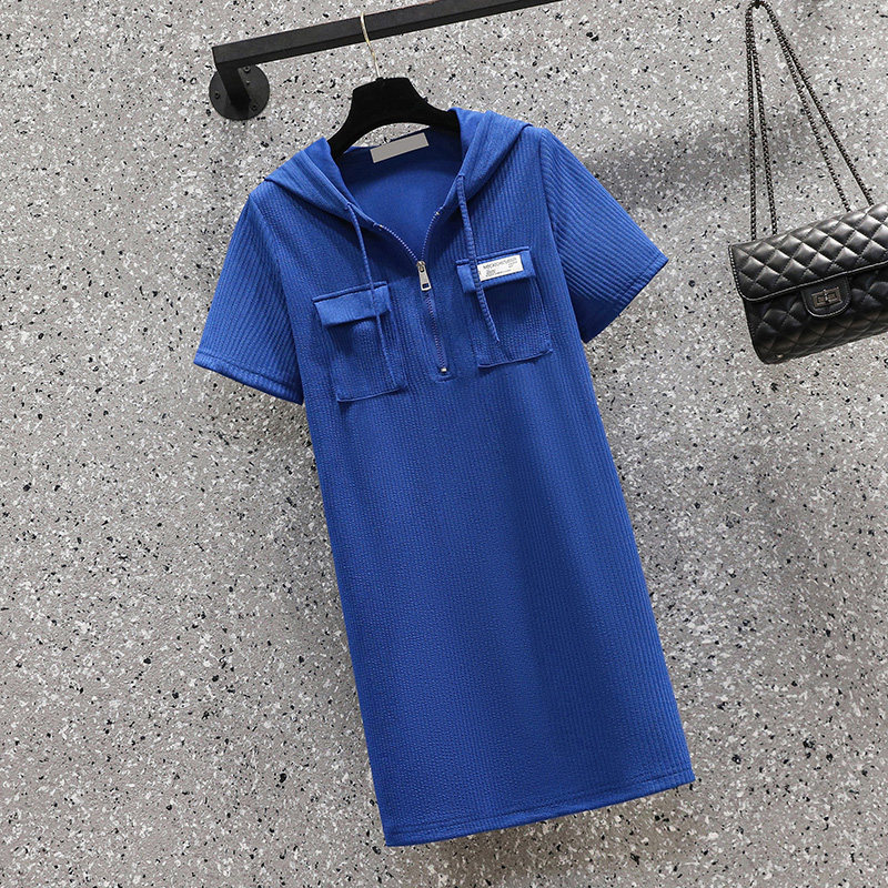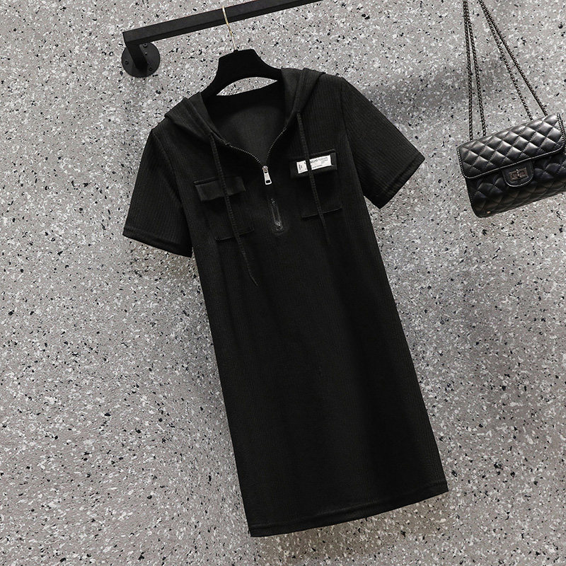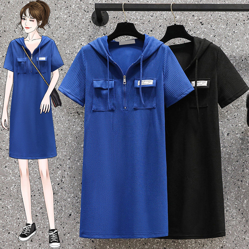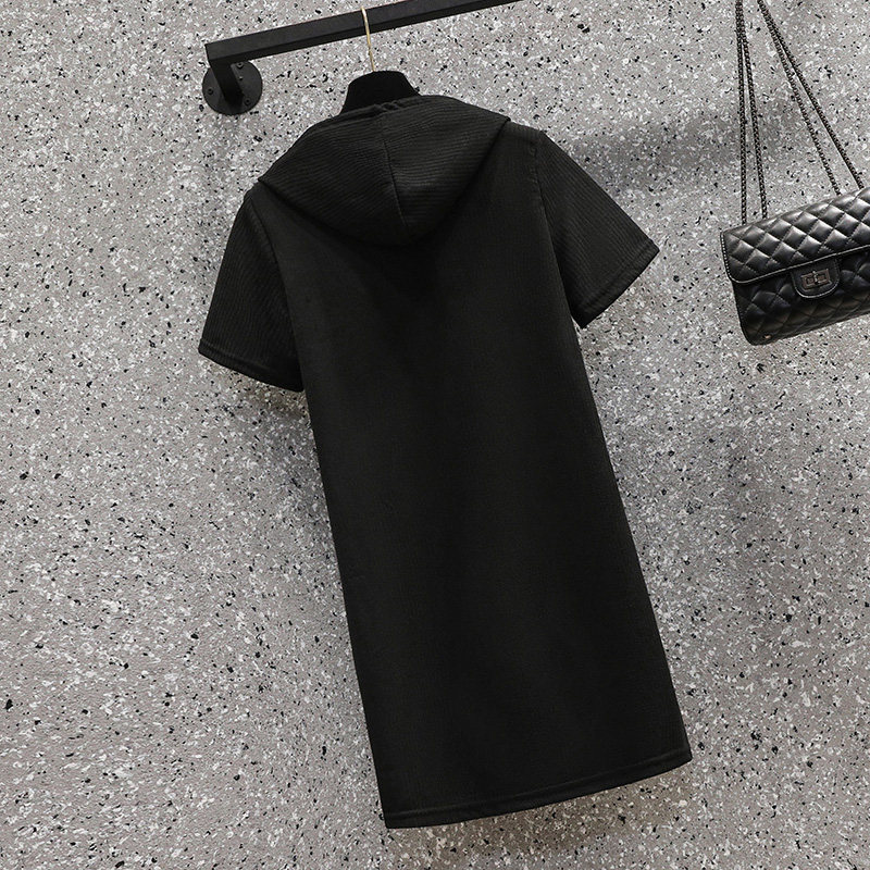 Летняя длинная толстовка с капюшоном, модное платье, трикотажная футболка, большой размер, средней длины, подходит для полных девушек