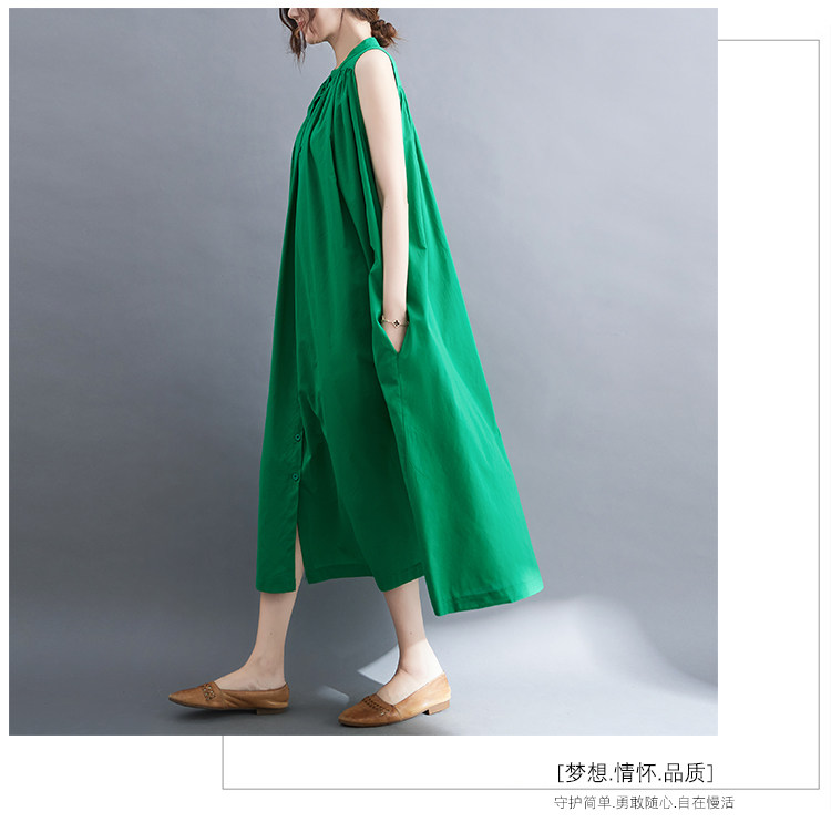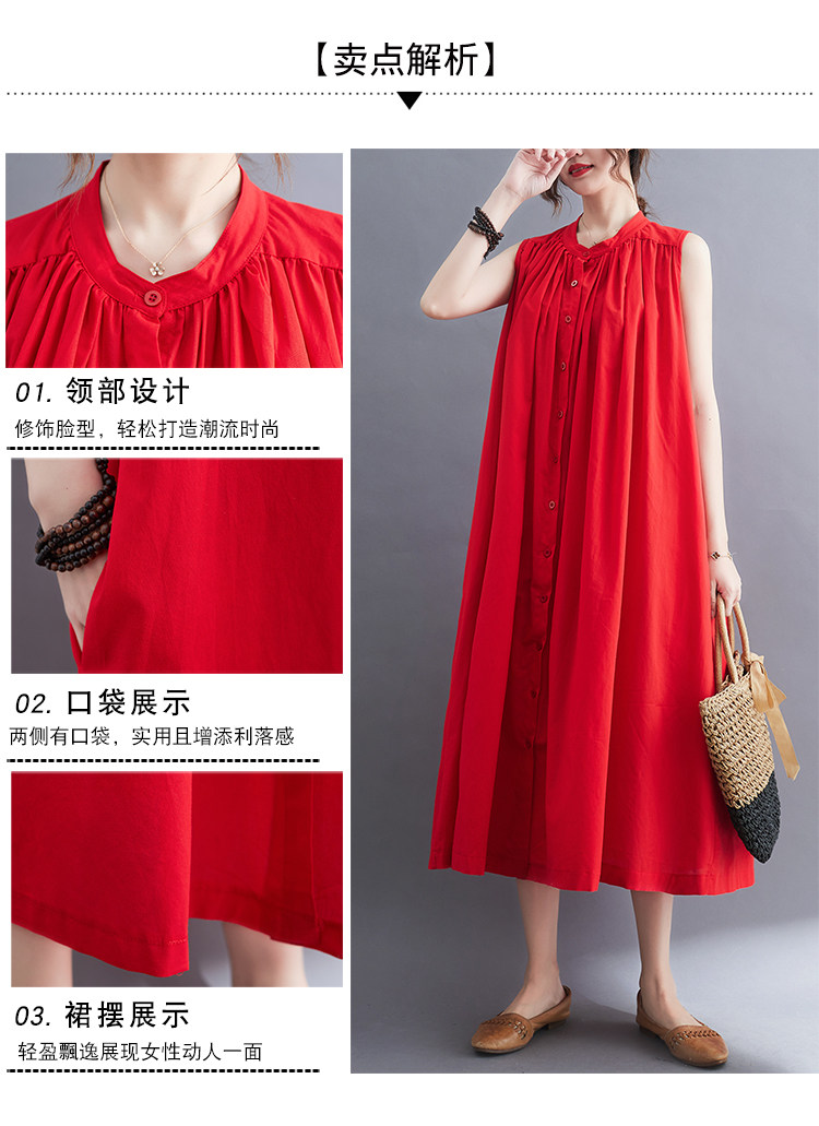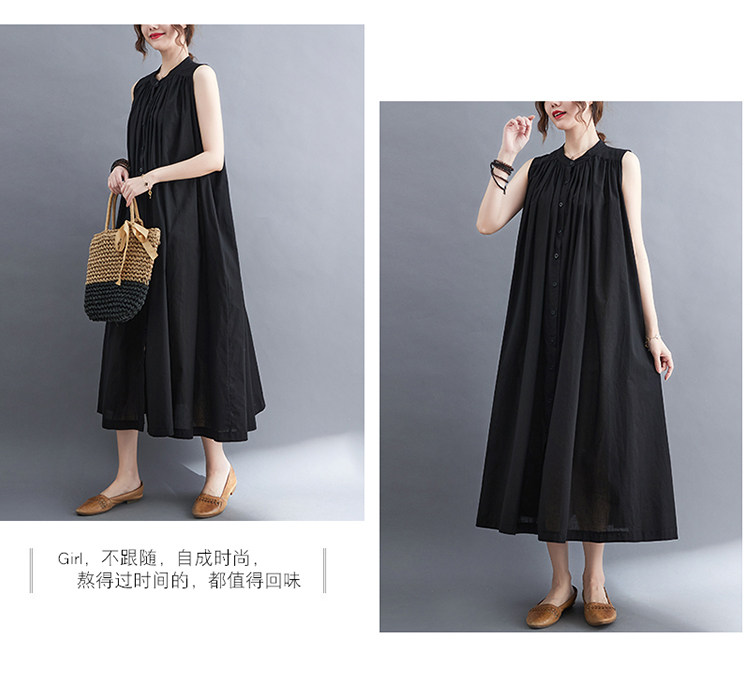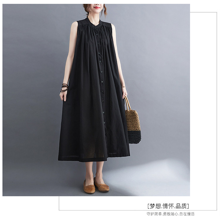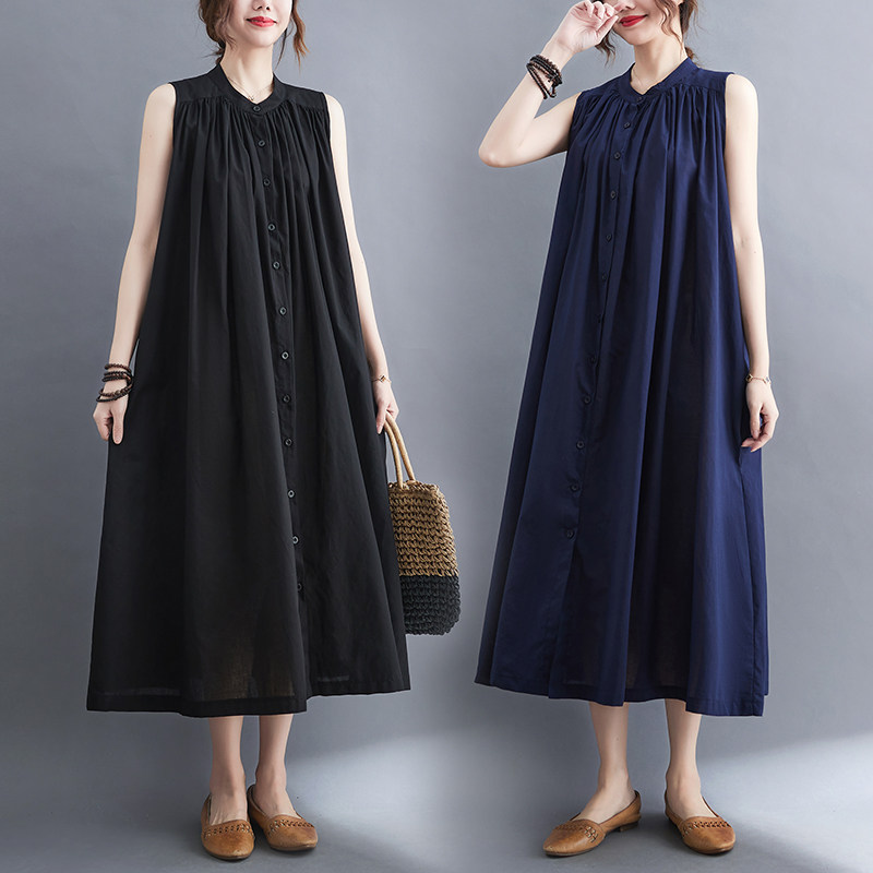 Летнее модное ретро платье, хлопковый жилет без рукавов, длинная юбка, большой размер, 2025 года, в корейском стиле