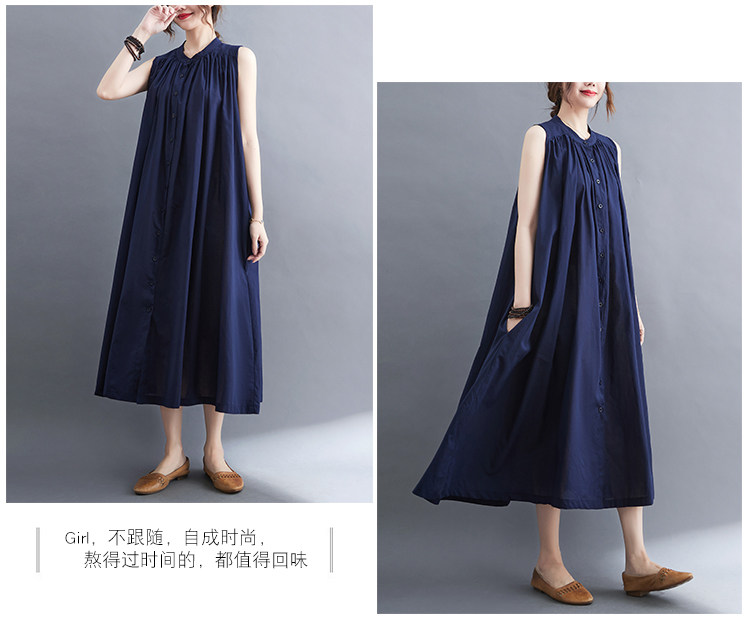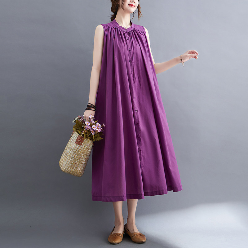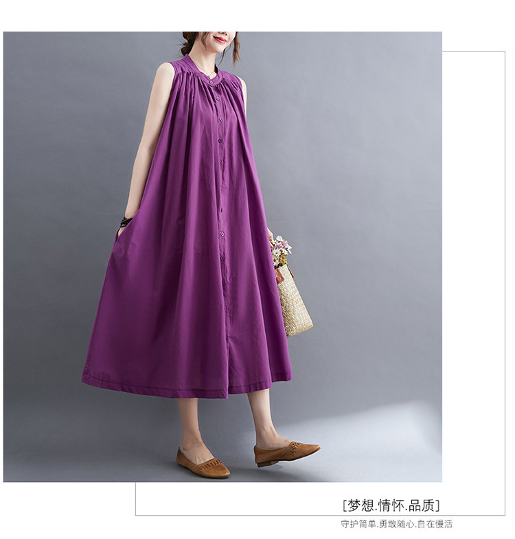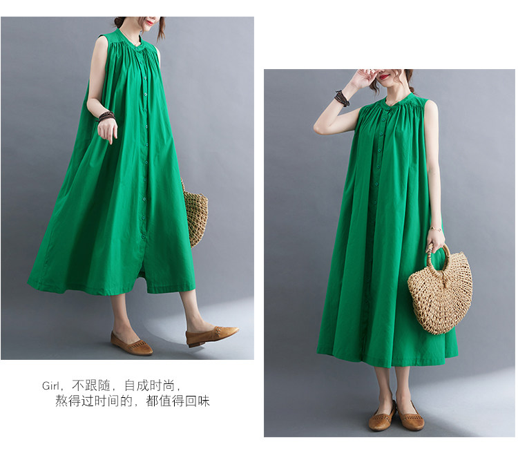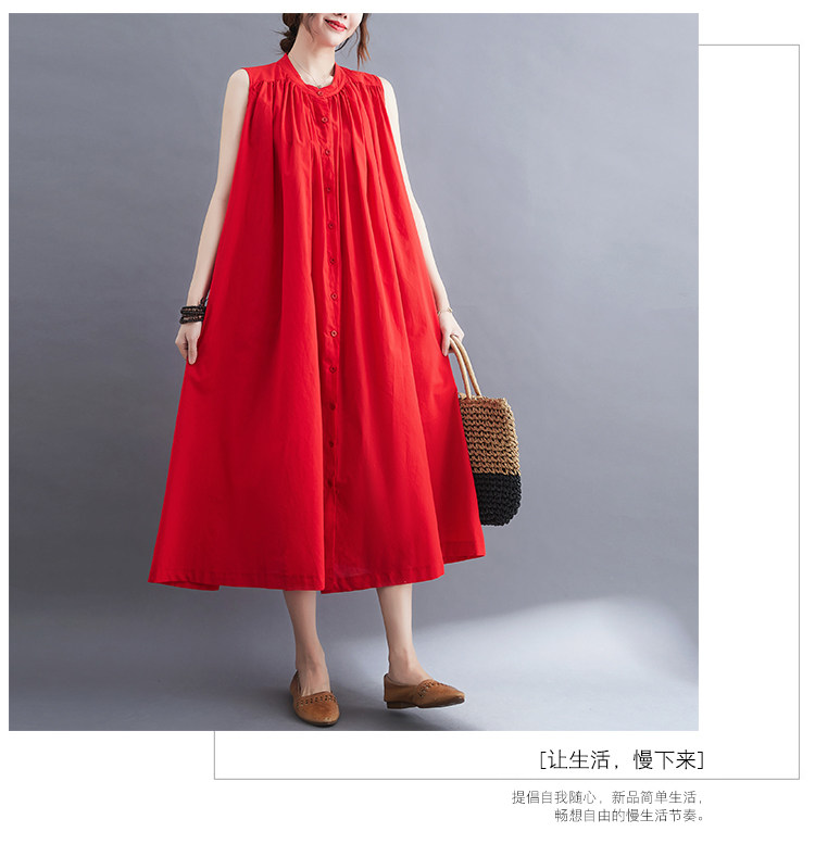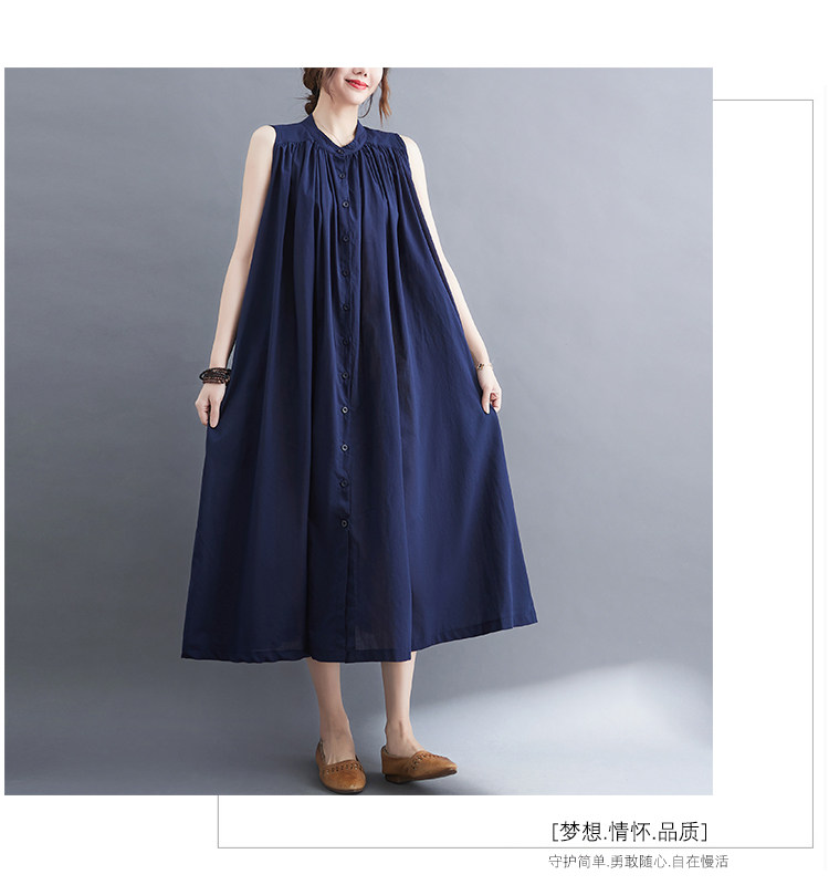 Летнее модное ретро платье, хлопковый жилет без рукавов, длинная юбка, большой размер, 2025 года, в корейском стиле