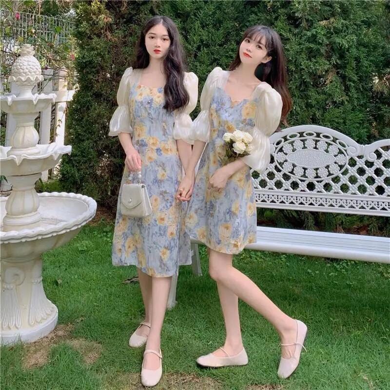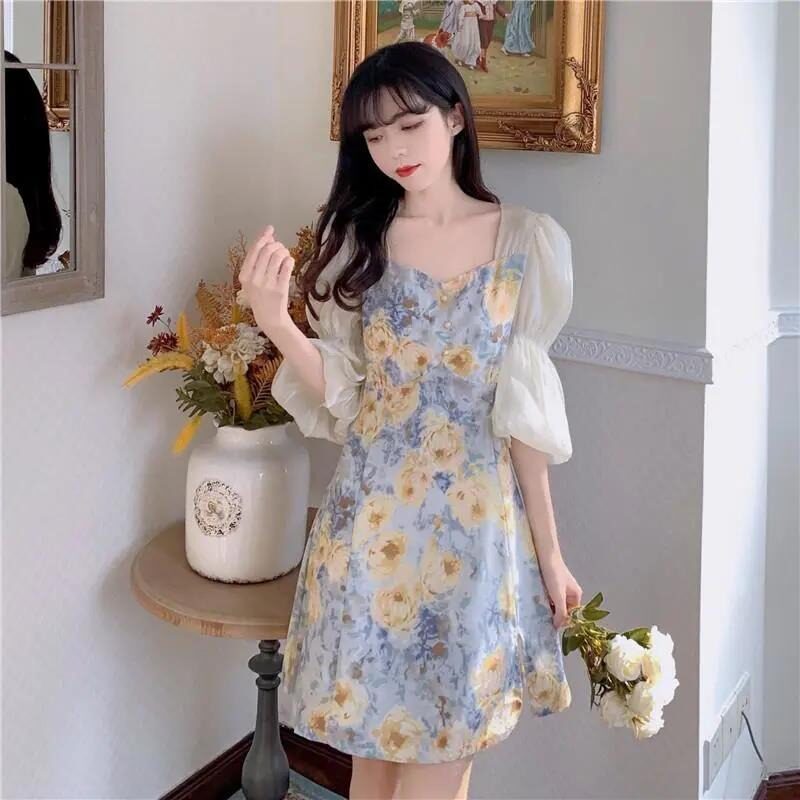 Платье, в цветочек, коллекция 2023, в стиле Шанель, квадратный вырез