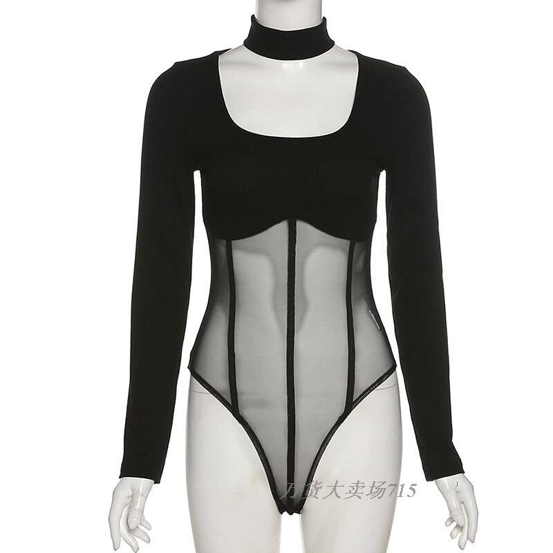 Трикотажное цветное сексуальное боди, базовая футболка, юбка из сетки