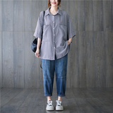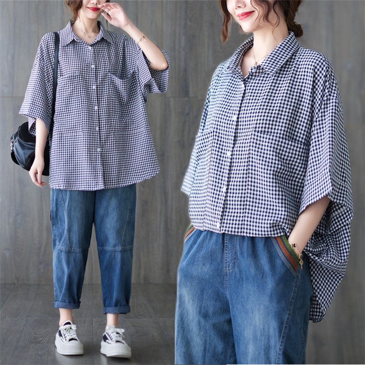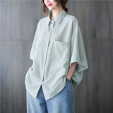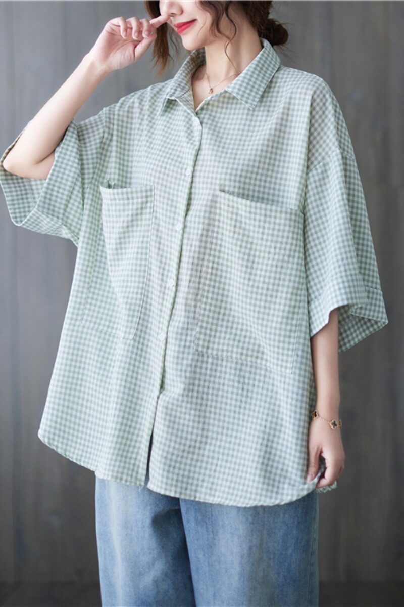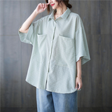 Летняя рубашка, короткий рукав, в корейском стиле, большой размер