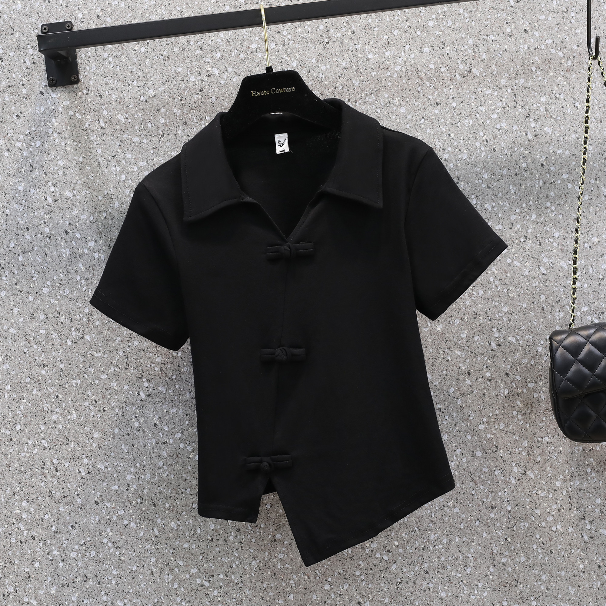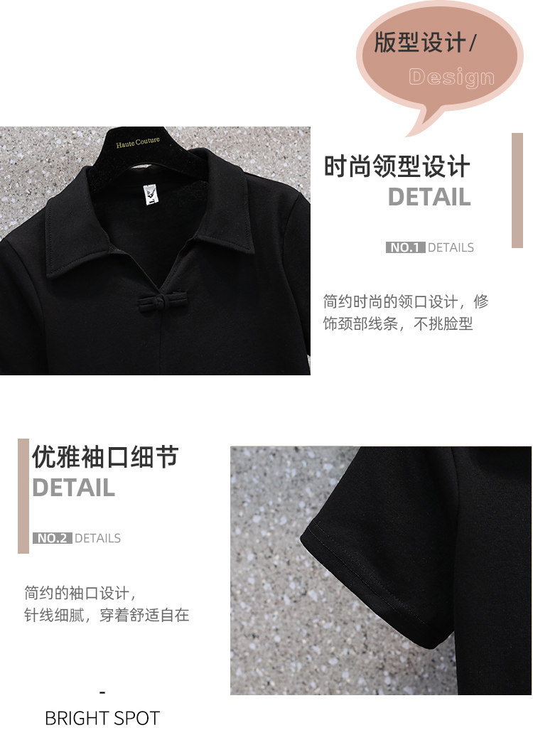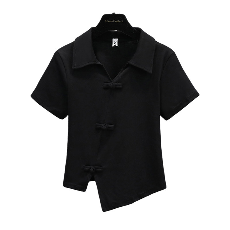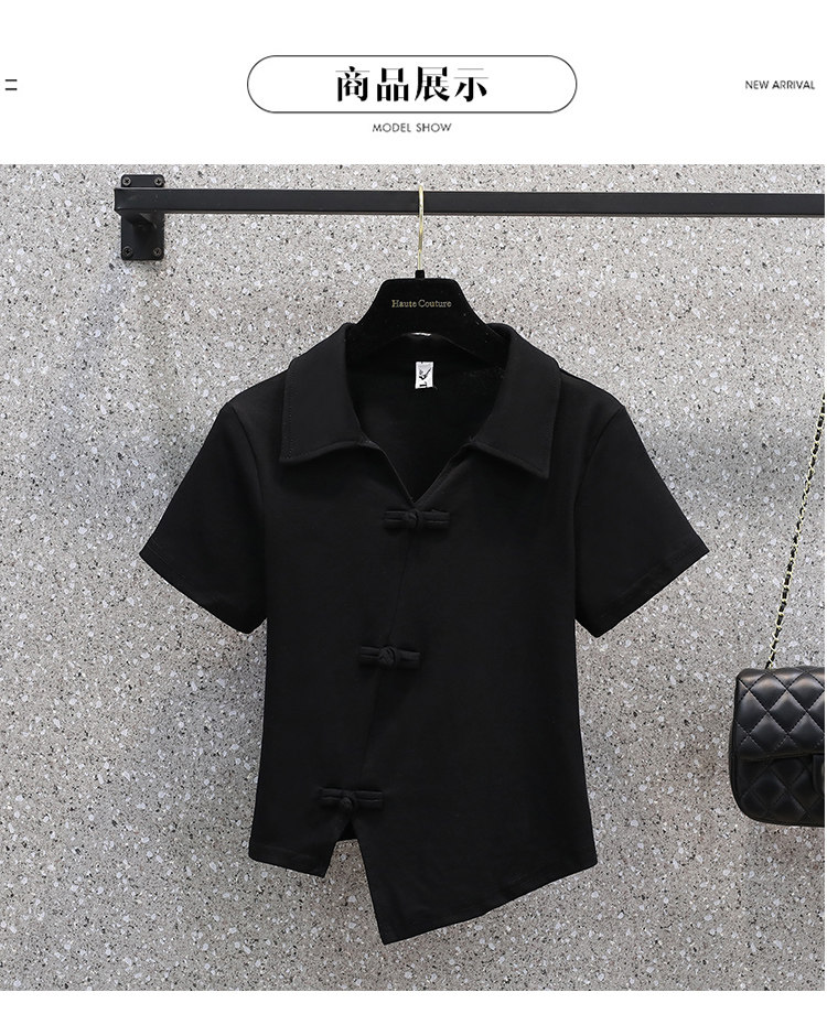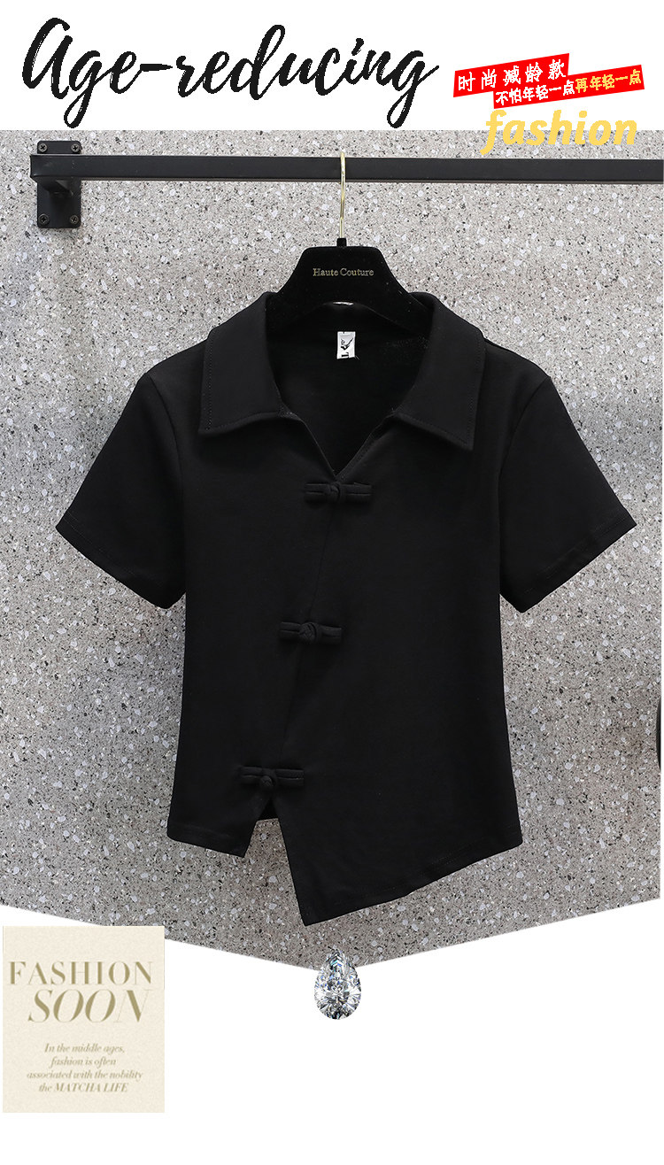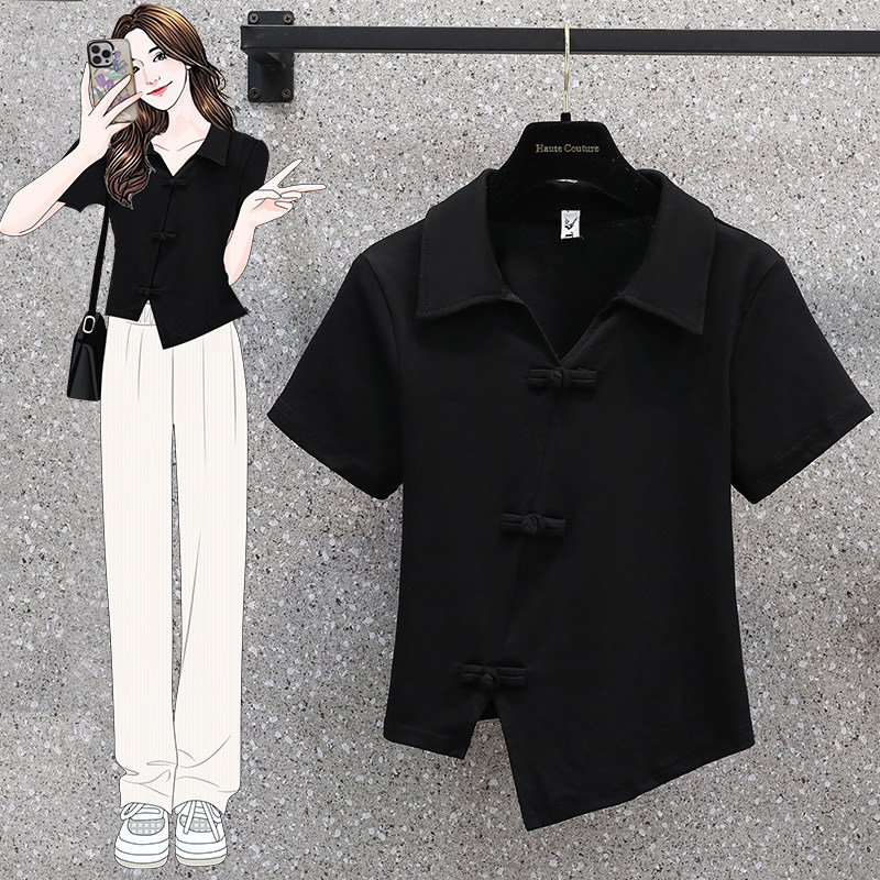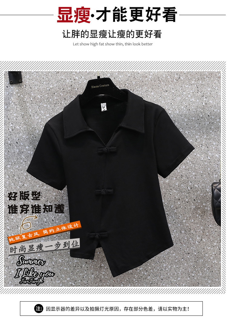 Летняя футболка, большой размер, китайский стиль, воротник поло, изысканный стиль