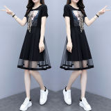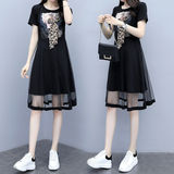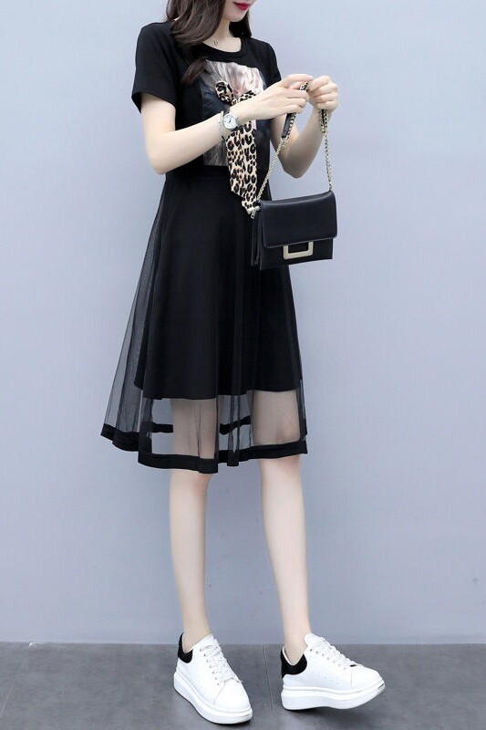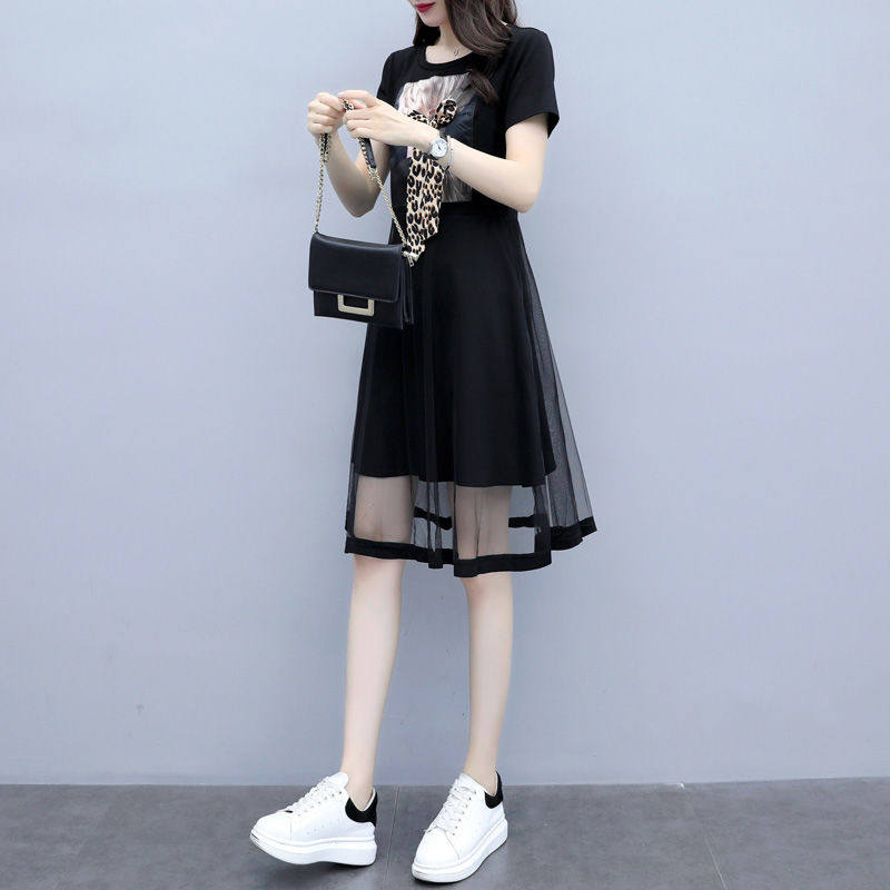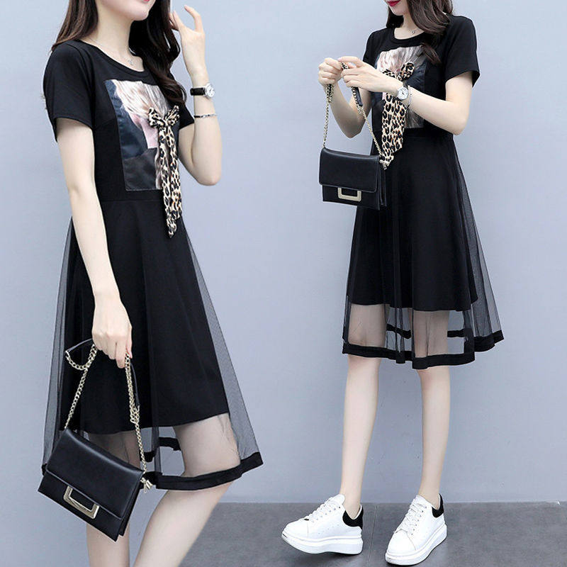 Летнее платье, длинная модная черная юбка, большой размер, в корейском стиле, средней длины, по фигуре, А-силуэт