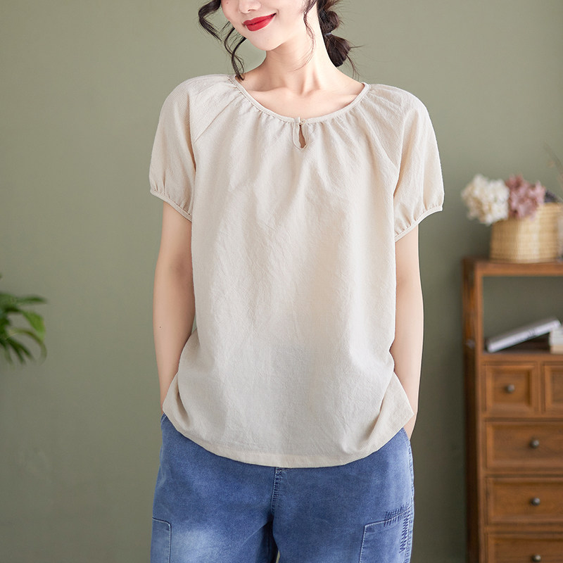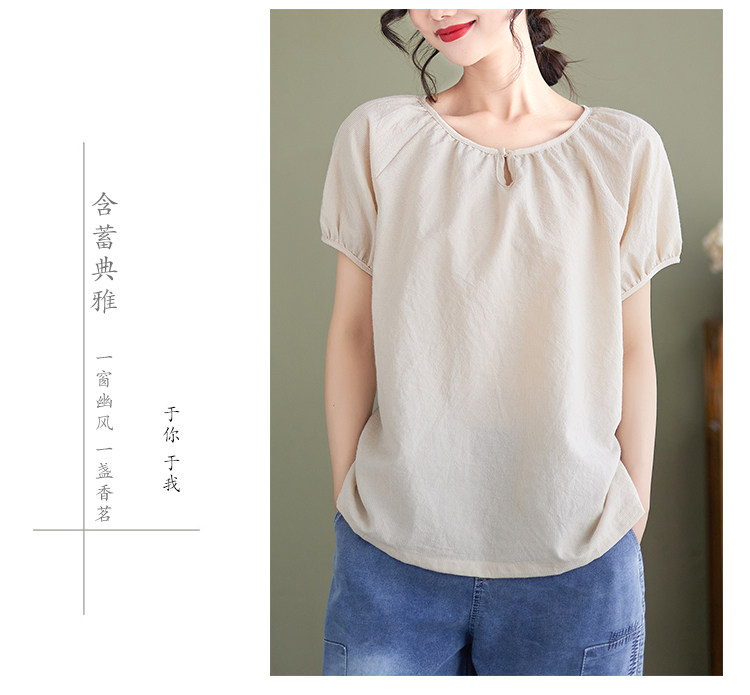 Ретро абрикосовая летняя футболка, рукава фонарики, размер, свободный крой, из хлопка и льна