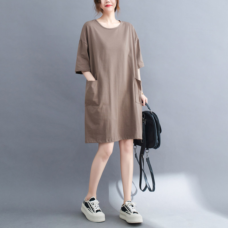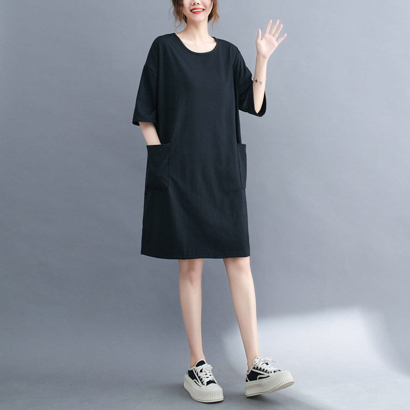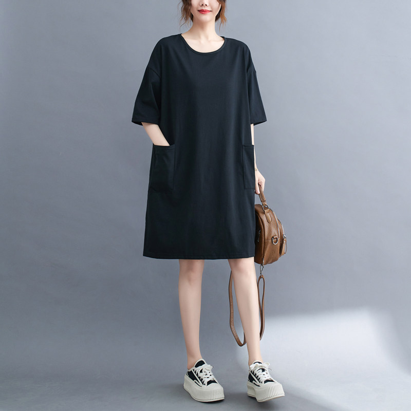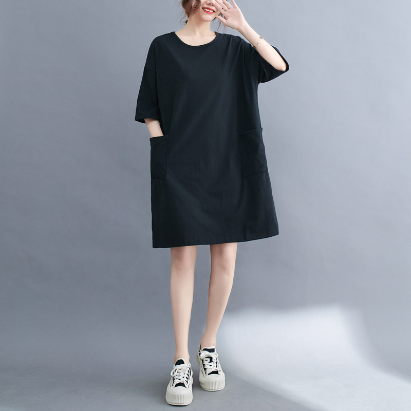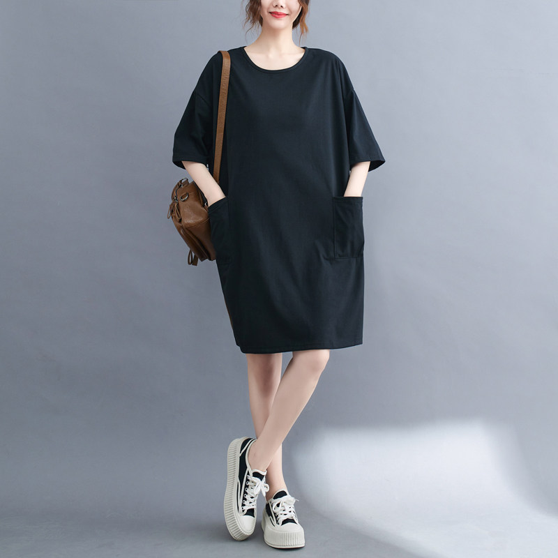 Футболка, летняя одежда, длинное платье с карманами, юбка, в западном стиле, большой размер, средней длины