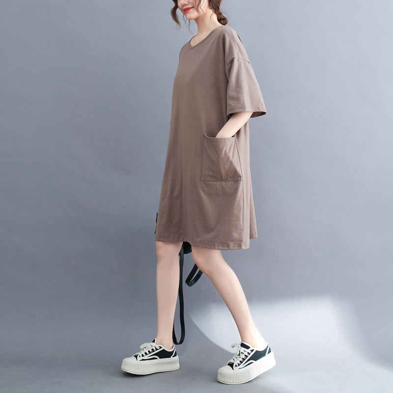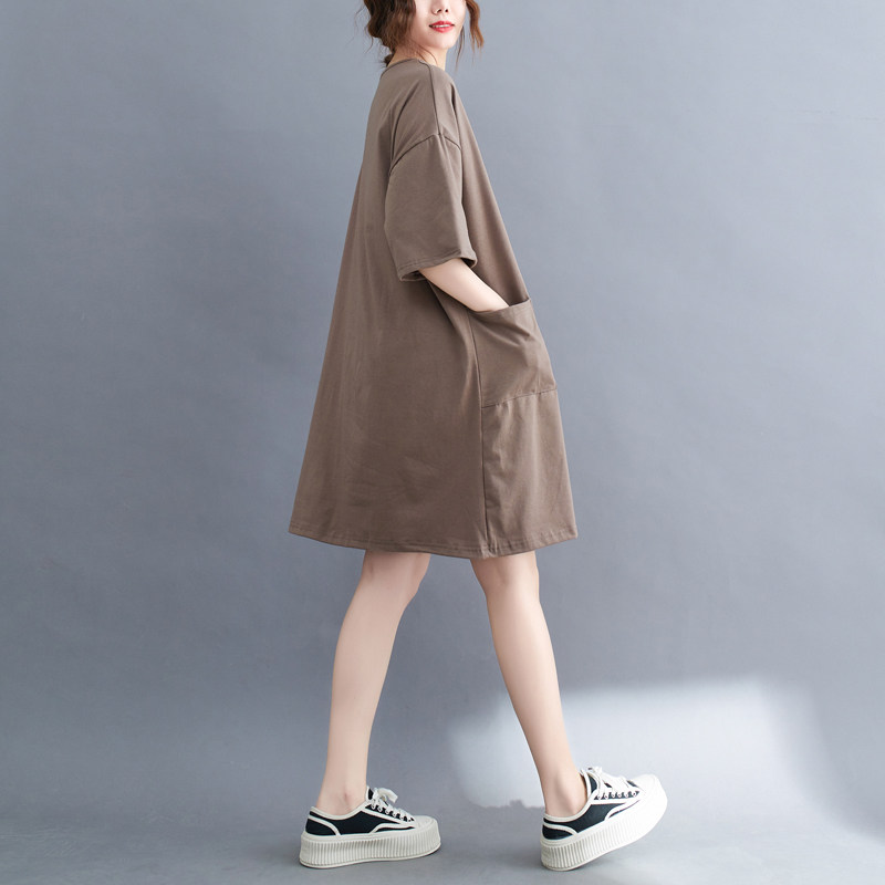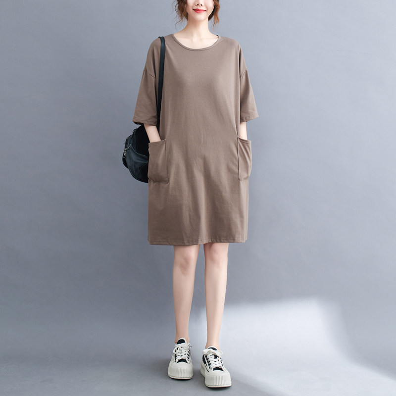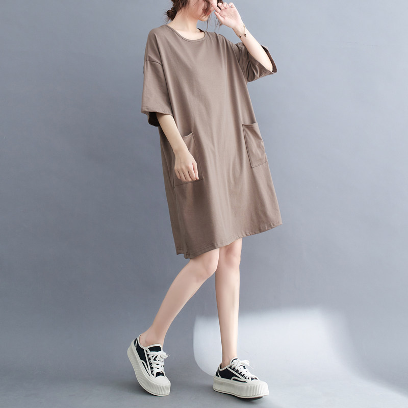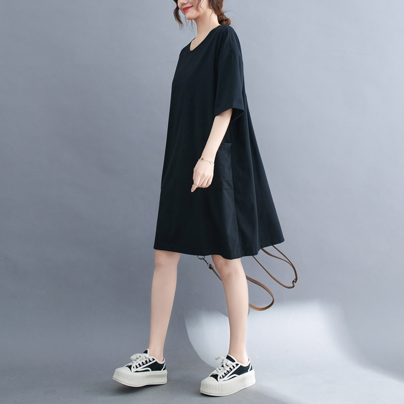 Футболка, летняя одежда, длинное платье с карманами, юбка, в западном стиле, большой размер, средней длины