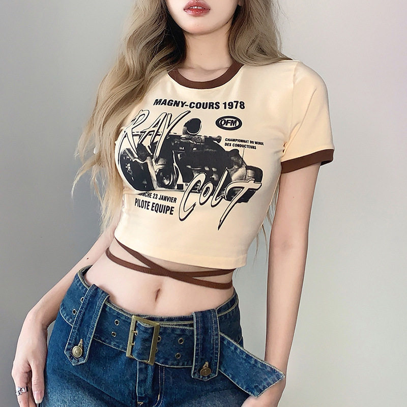 Tide, ретро летняя футболка, в американском стиле, популярно в интернете, облегающий крой
