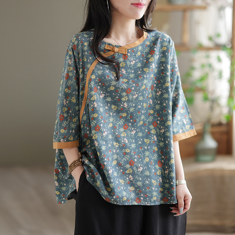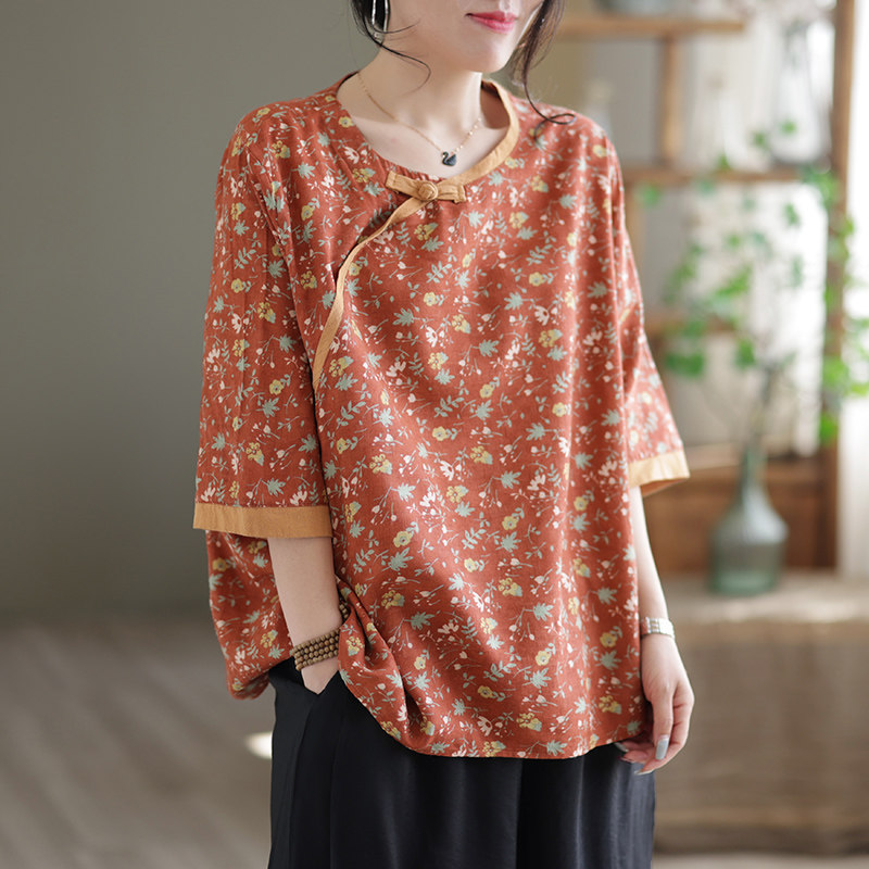 Ретро футболка, из хлопка и льна, короткий рукав, оверсайз
