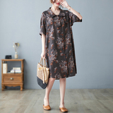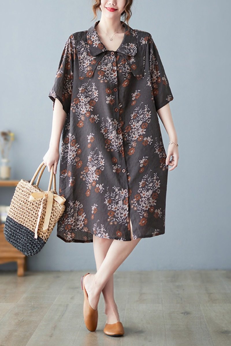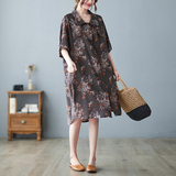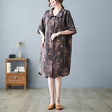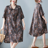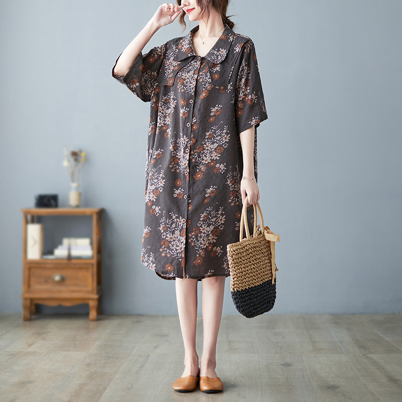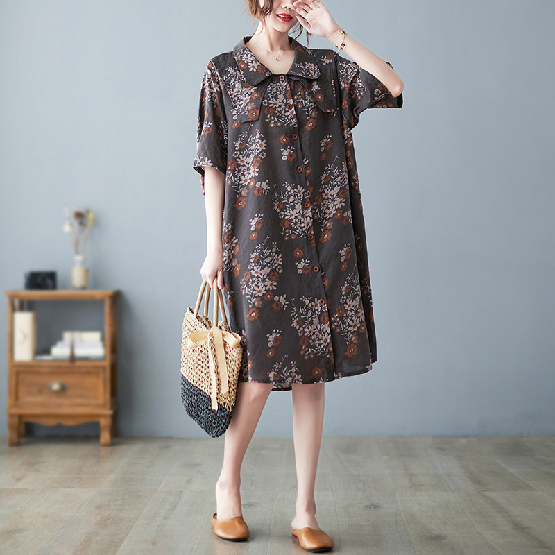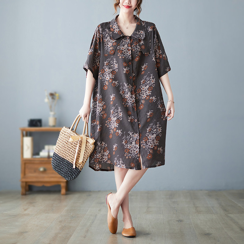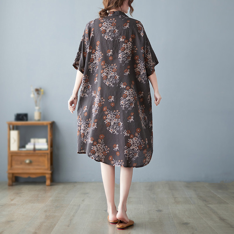 Летнее ретро платье, рубашка, длинная юбка, из хлопка и льна, оверсайз, цветочный принт